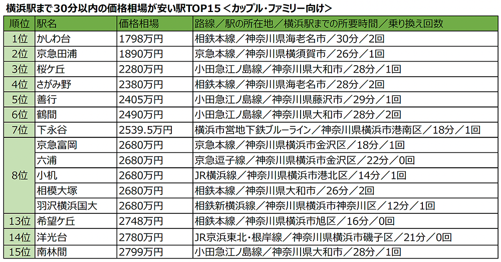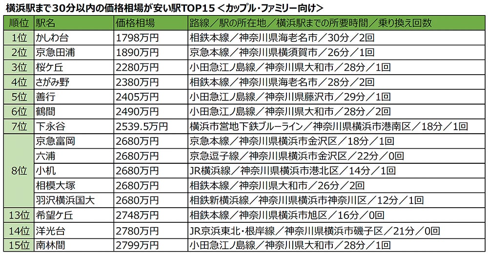 「横浜駅」まで30分以内、中古マンション価格相場が安い駅ランキング!横浜駅まで乗り継ぎなしで行ける駅や10分以内で行ける駅もランクイン
