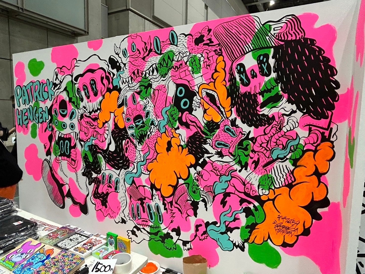 白いキャンバスに2日間かけて描かれていくライブペイント。どんな作品が出来上がるのか、ついつい見入ってしまいます。さらにペインターと会話したり、記念にポストカードを買ったりと、見るだけでは終わりません!