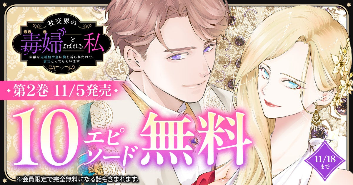 『社交界の毒婦とよばれる私~素敵な辺境伯令息に腕を折られたので、責任とってもらいます~』最新2巻発売を記念して「ヤングアニマルWeb」にて10エピソード無料!