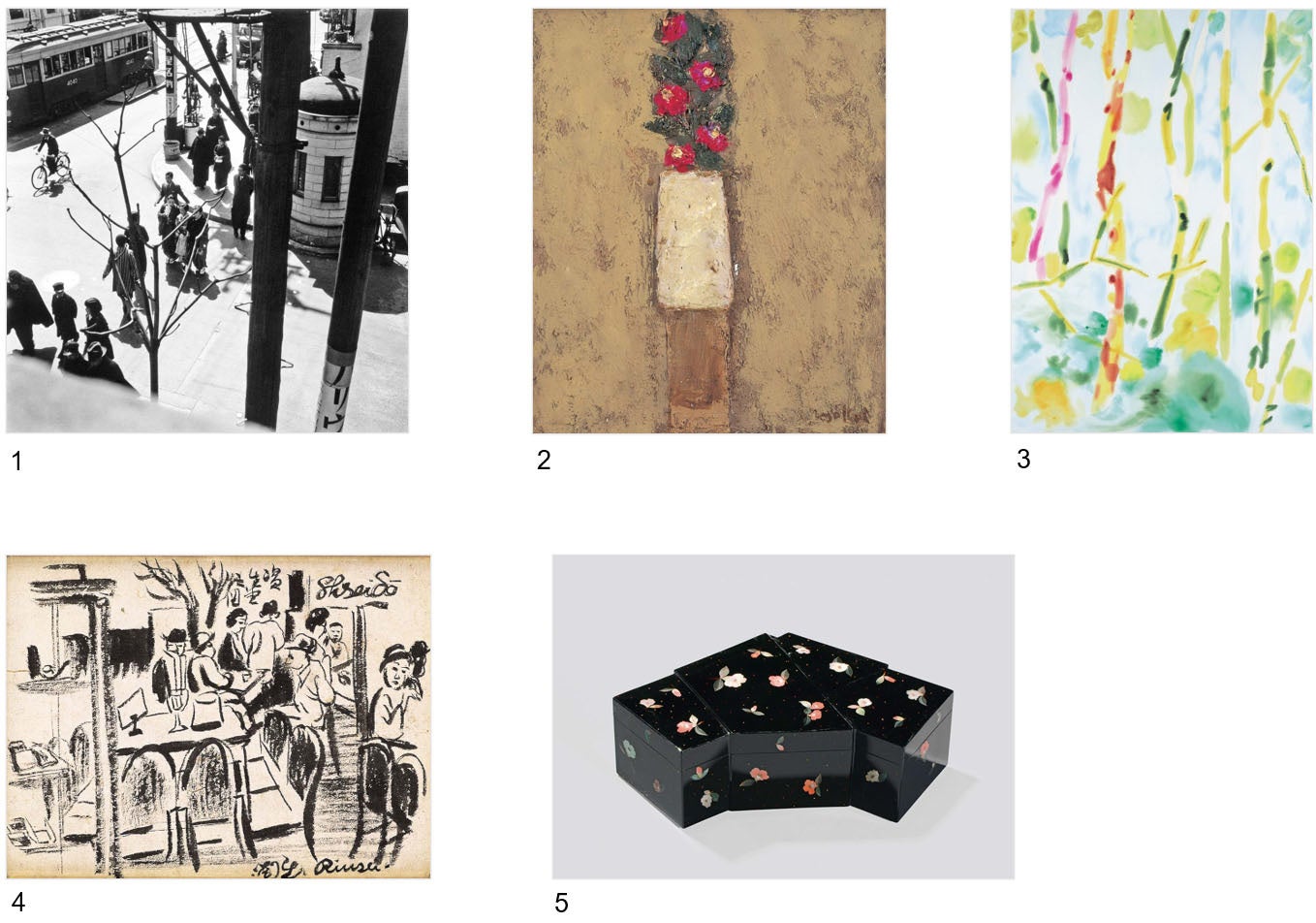 資生堂の企業イメージに結び付く創業の地「銀座」と「椿」に題材を採った、美術品や工芸品、化粧品やパンフレットなどの企業資料を精選し、過去から現在へと続く二つのイメージの変容を辿りながら、芸術によって培われた資生堂の美意識の一端を紹介します。