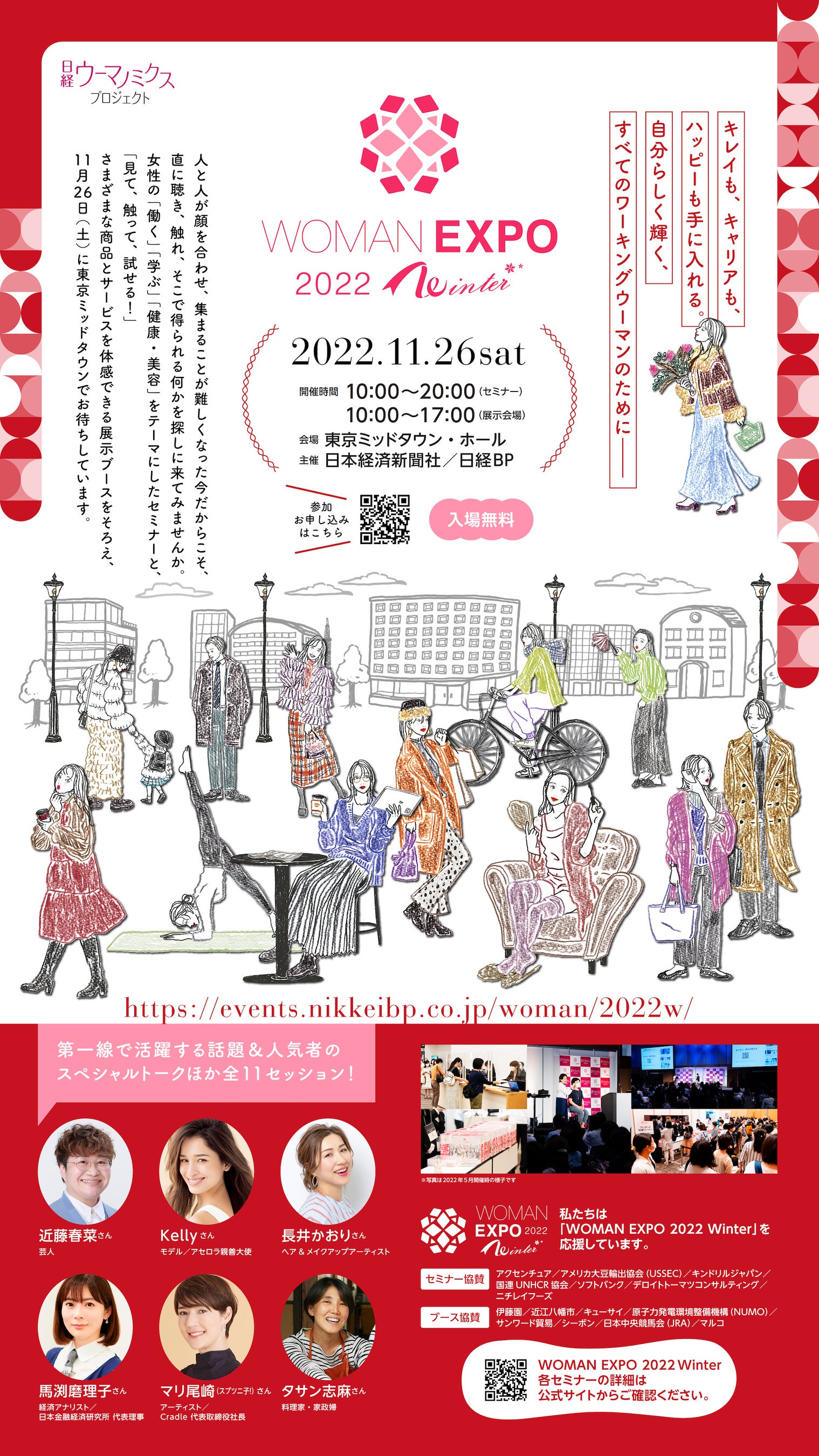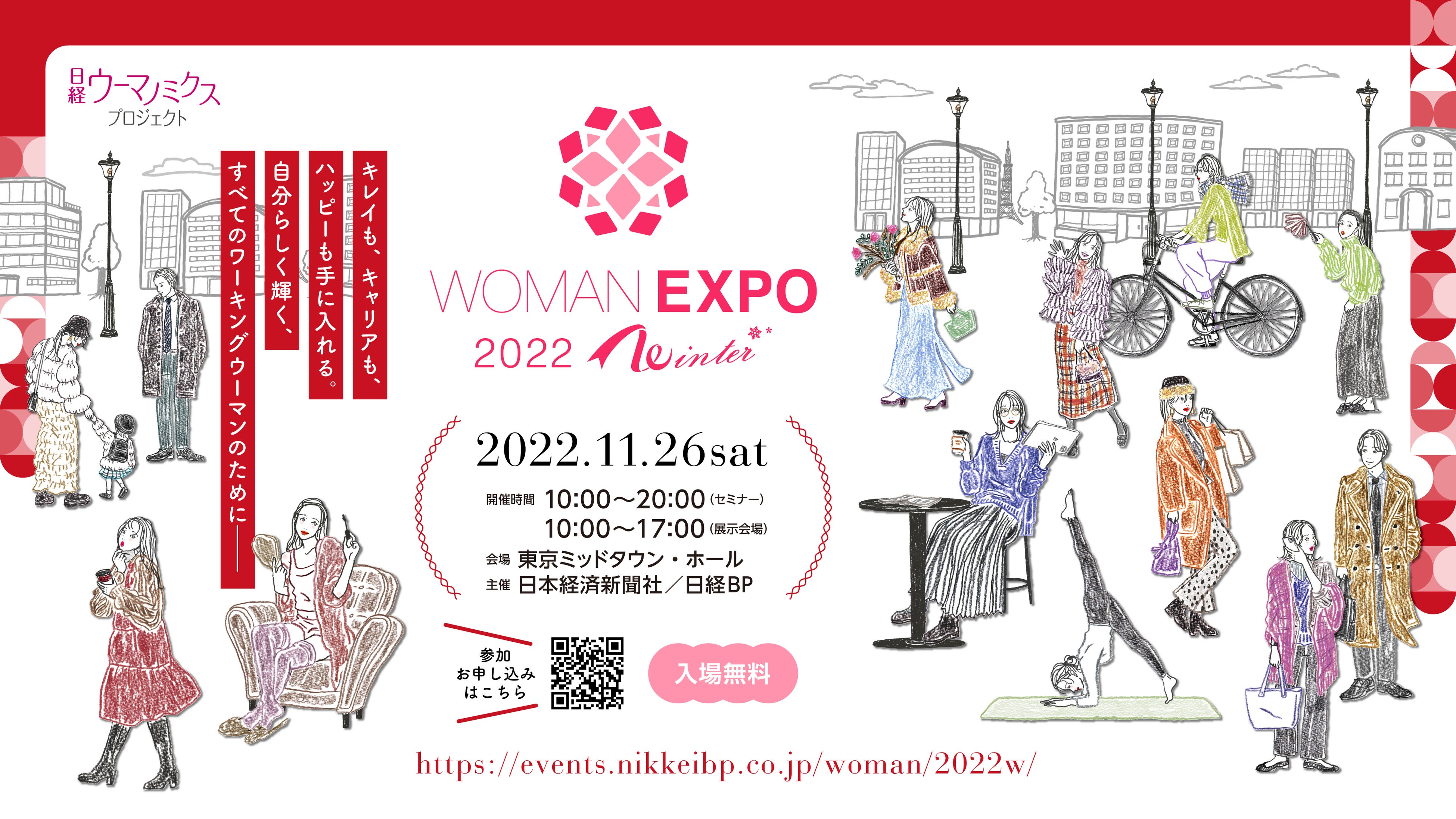 セミナー事前申込受付は公式サイトから → https://events.nikkeibp.co.jp/woman/2022w/ WOMAN EXPOは、女性がもっと活躍できる環境づくりを応援する「日経ウーマノミクス・プロジェクト」の一環として、2014年から開催しているイベントです。