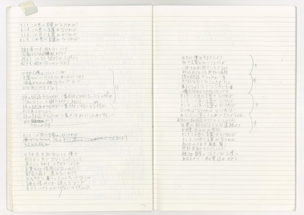 びっしりと詩が書き込まれた直筆ノート。ここから数々の作品が生まれた。