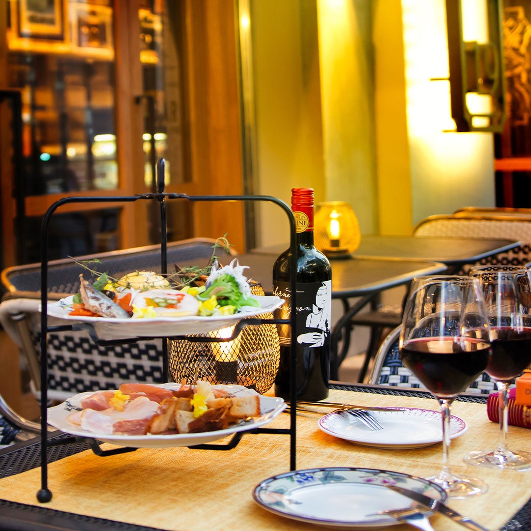 「夜のカフェテラス」を思わせるテラス席でワインとご一緒に…。