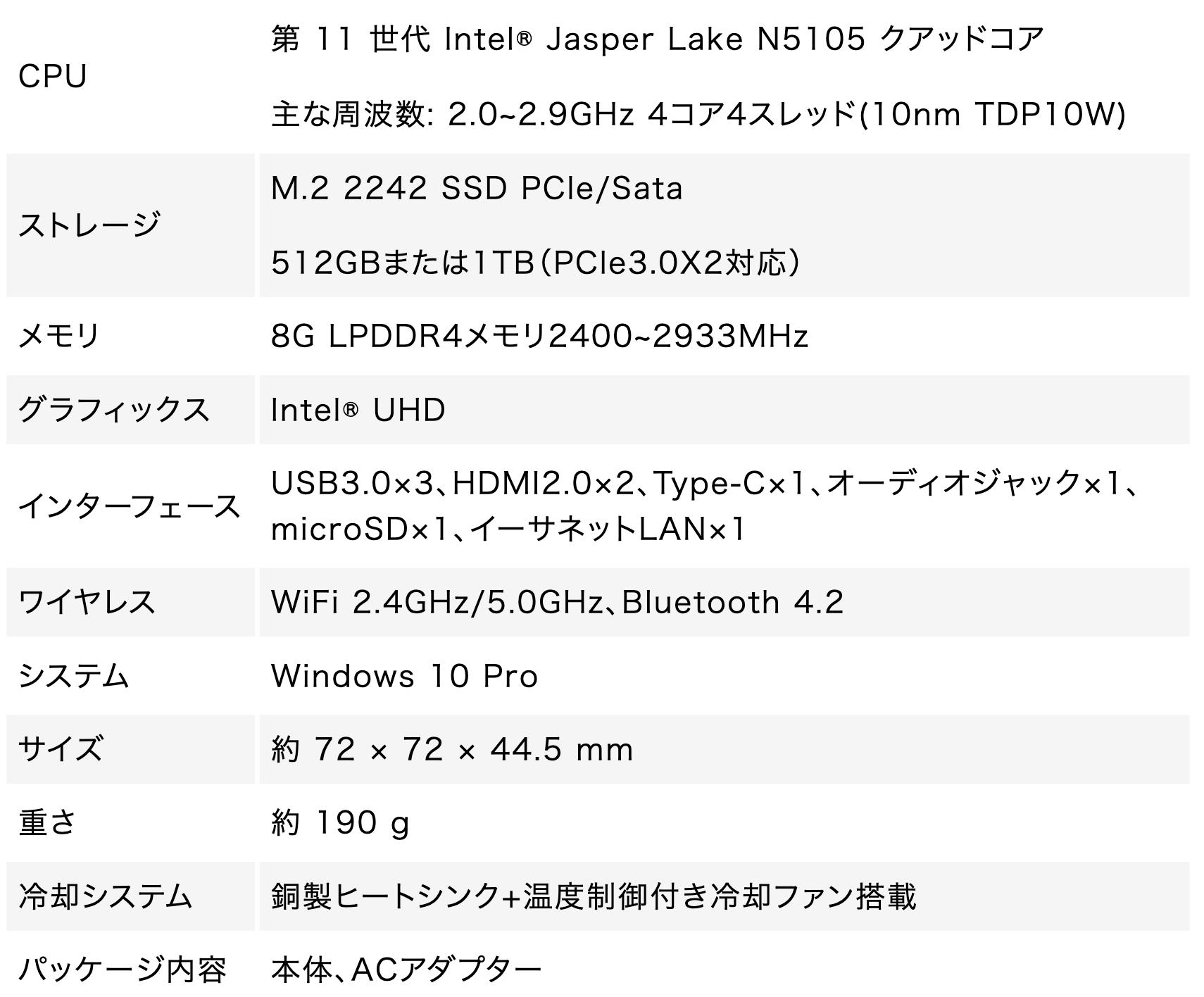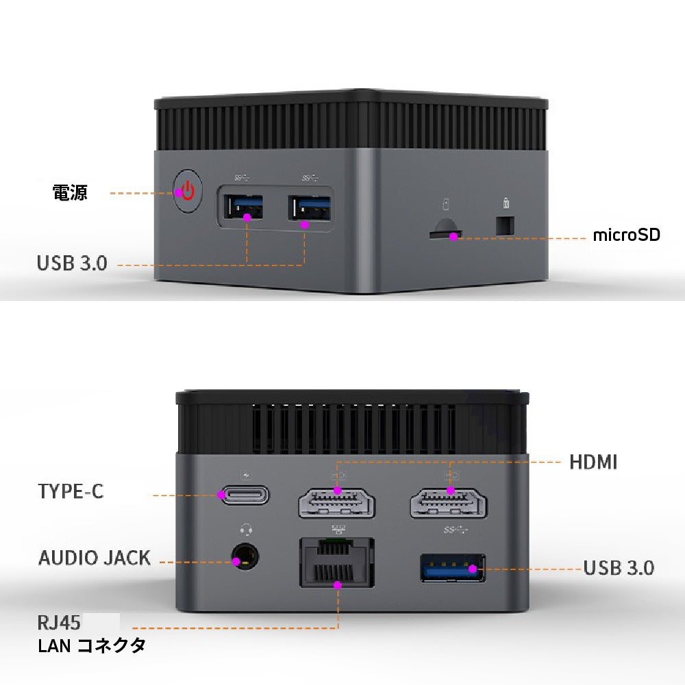 【Windows 10 Pro/N5105・4コア/メモリ8GB/WiFi/BT/USB×3/HDMI×2/USB-C/microSD/LAN】