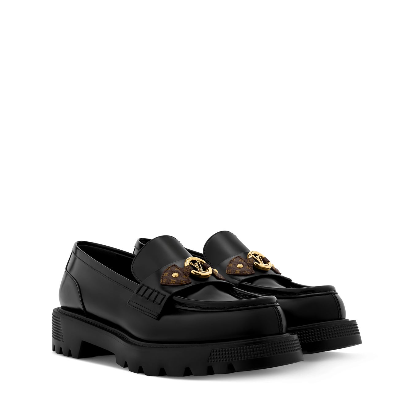 スムースレザーにモノグラム·キャンバスのヴァンプを添えて再解釈した、今シーズンの「アカデミー ローファー」。アッパーにかかるストラップにはコントラストを効かせたモノグラム·リバース キャンバスを使用し、ルイ·ヴィトンのトランクを象徴するSロックスタイルの留め具から着想を得たゴールドカラーのアクセサリーをあしらいました。軽量なマイクロアウトソールがトレンド感溢れるボーイッシュなスタイルを完成させます。
