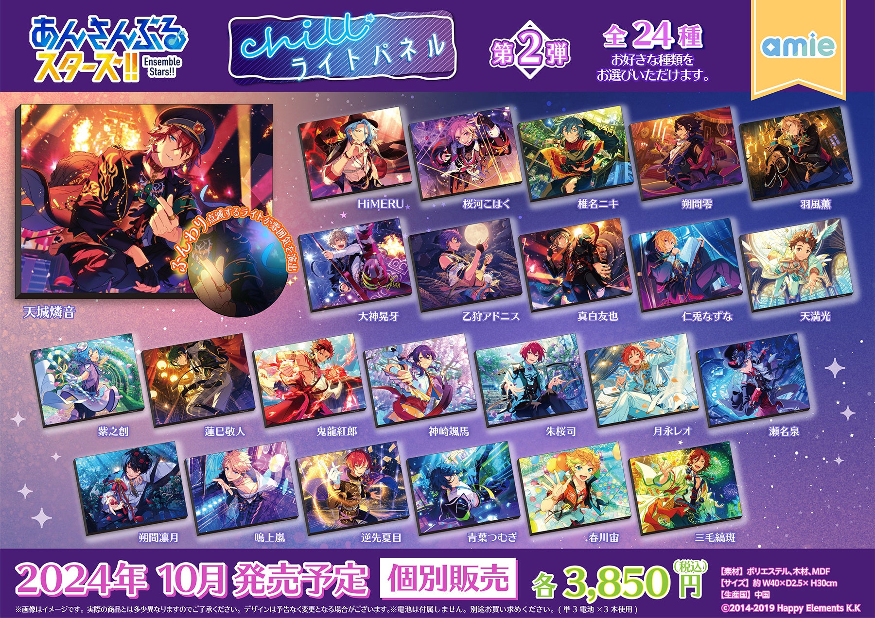 フィギュア&ホビー通販大手の「あみあみ」を運営する大網株式会社(本社・東京都文京区)は、自社が展開するグッズブランド「amie(アミィ)」から「『あんさんぶるスターズ!!』chillライトパネル」の第1弾・第2弾を発売いたします。