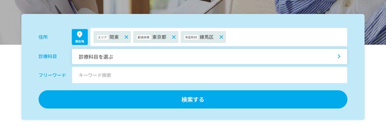 一般的なサイト:東京都練馬区にクリニック所在地のある施設だけが検索結果に表示される