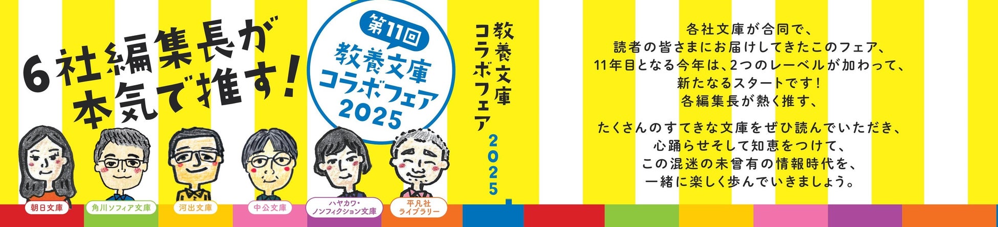 朝日文庫、角川ソフィア文庫、河出文庫、中公文庫、ハヤカワ・ノンフィクション文庫、平凡社ライブラリー(五十音順)の6レーベルが共同で開催する「6社編集長が本気で推す 教養文庫コラボフェア2025」が、2025年1月23日ごろより全国書店にてスタートいたします。