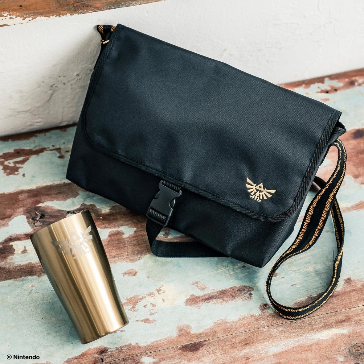ゴールドの刺しゅうでハイラルの紋章をデザインしたショルダーバッグ