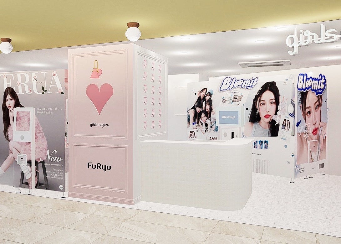 店内では、フリューの人気機種『Bloomit(ブルーミット)』を含む計7台のプリ機や、ヘアメイクのお直しができるメイクアップカウンターの設置、ヘアアイロン等のレンタルサービスも実施。プリ撮影はもちろん、店内のどこで撮っても“1番かわいい私を残す”ことができるお店に、是非ご注目ください。