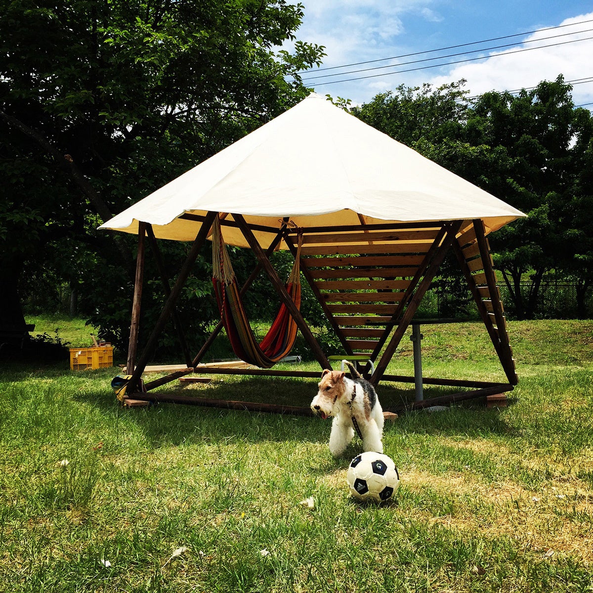 (フレーム材:多摩産材ヒノキ丸棒・ウッドオイル塗装/190cm/組立後の底面面積:6.21㎡/高さ261.5cm)