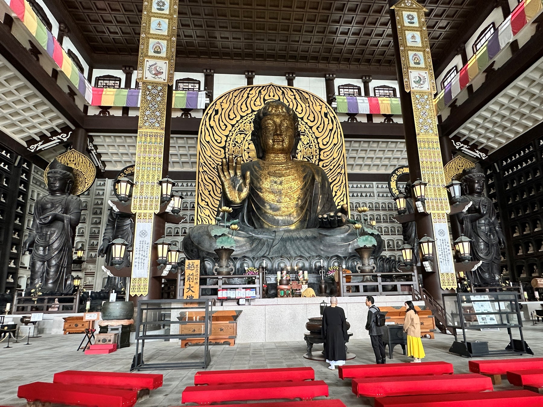 次に向かったのは【清大寺 大仏殿】。奈良の大仏様よりも大きく、壮大なスケールの越前大仏様を参拝。まるで人間が小さくなったかと思うほどのそのスケール感に2人も圧倒されます。