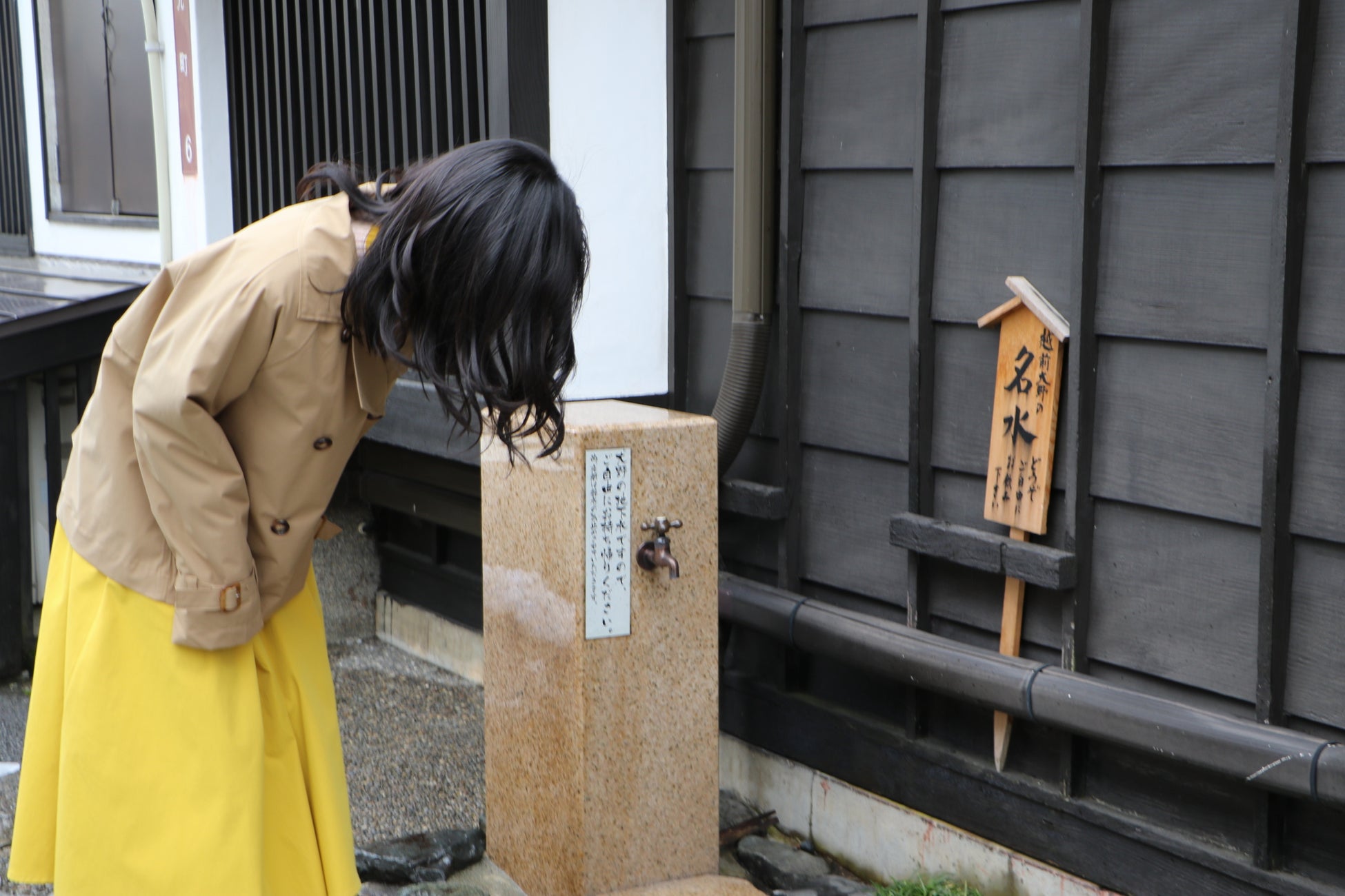 街を散策していると突如現れた“越前大野の名水”と書かれた看板と蛇口。大野の地下水を味わっていると【南部酒造場】を発見!