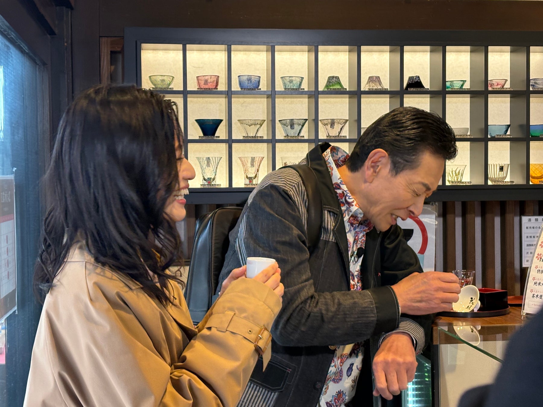 でしたが、さっそく、この地方でしか飲めないお酒があるということで【あまごの宿】へ。勝山市内の限られた飲食店のみでしか味わえないという、とても貴重な『秘之一本義』をいただきます。三田村が注いだところ…お店の代表の一言で一同大笑い!?