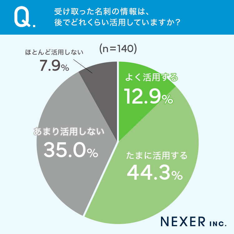 質問3:受け取った名刺の情報は、後でどれくらい活用していますか?