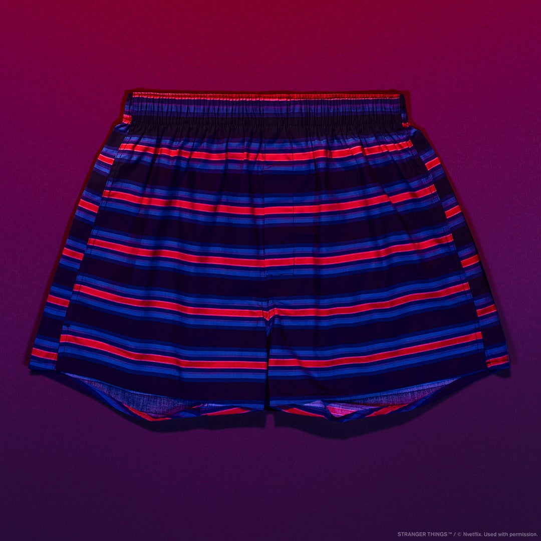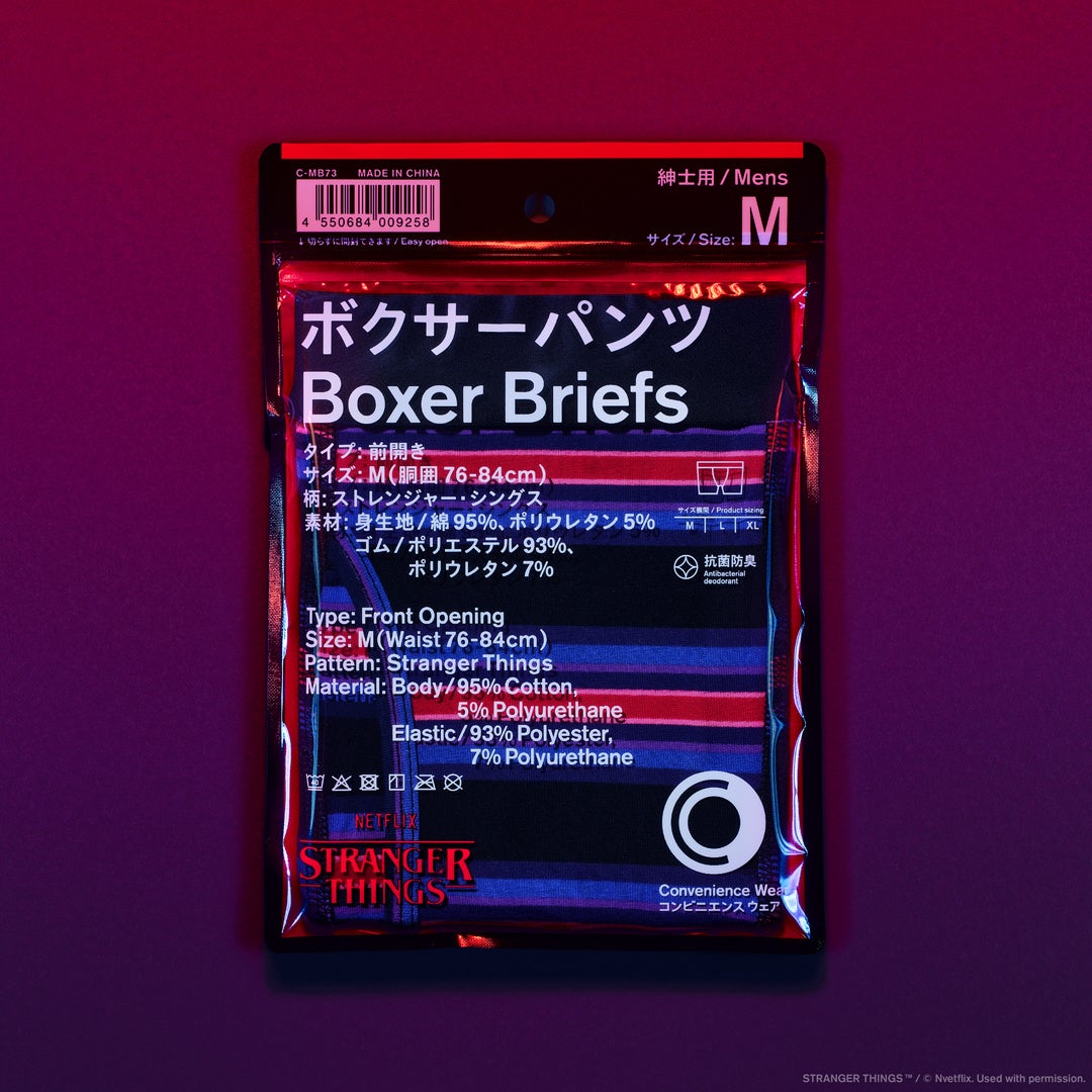 【内容】「ストレンジャー・シングス 未知の世界」をモチーフに配色したボクサーパンツです。抗菌防臭加工でニオイが気になりにくい仕様です。