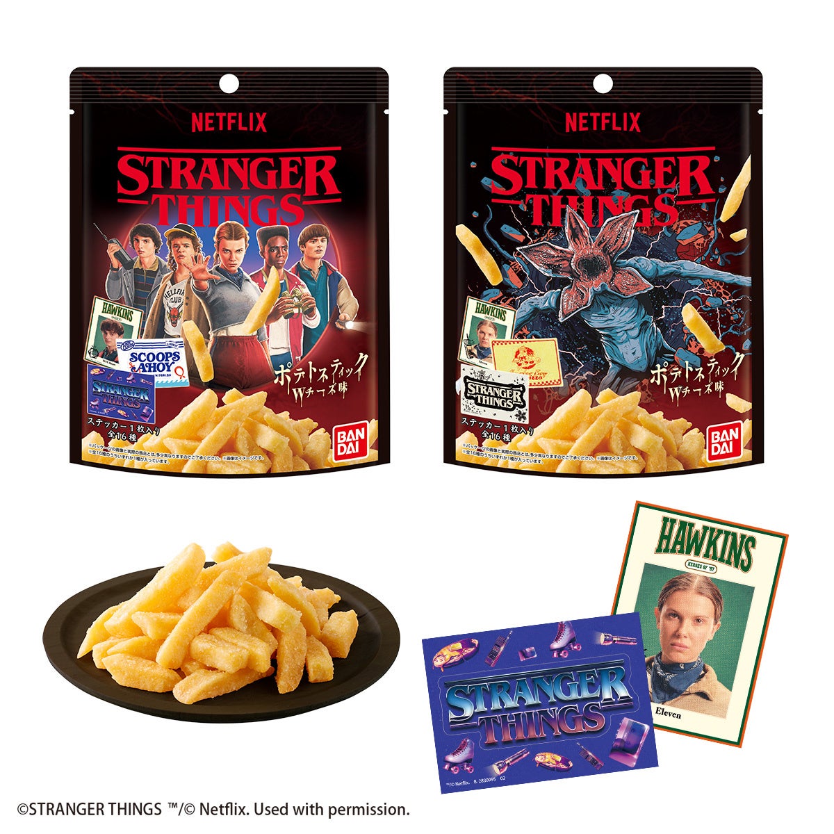 また、2025年12月23日(火)からは「Stranger Things ステッカーつきポテトスティック Wチーズ味」198円(税込213円)を一部店舗で先行発売いたします。