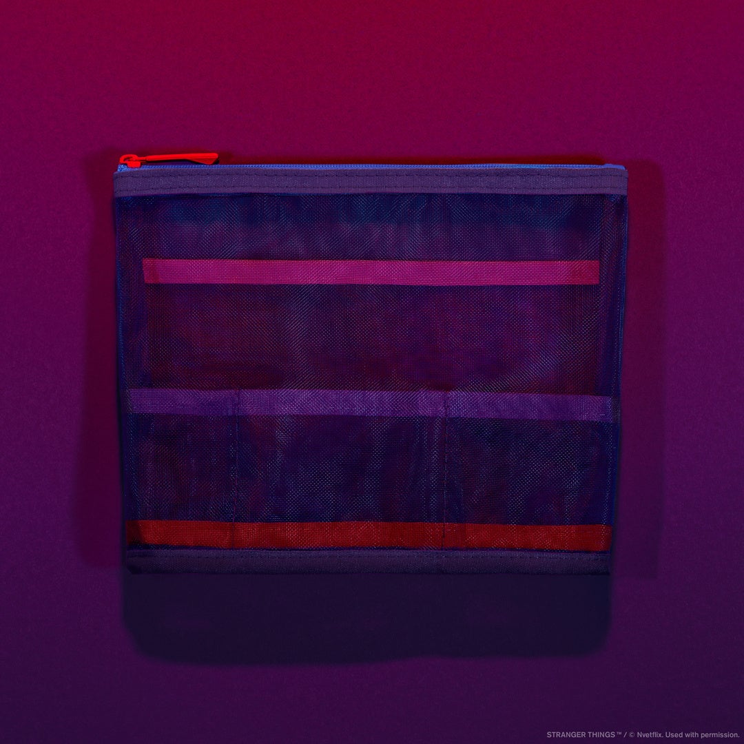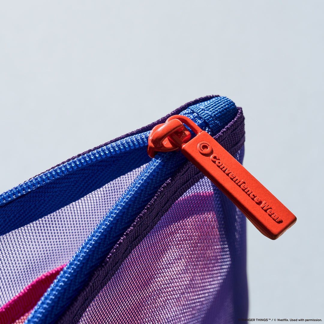 【内容】「ストレンジャー・シングス 未知の世界」をモチーフに配色したメッシュポーチです。人気のメッシュポーチで初のコラボアイテムです。