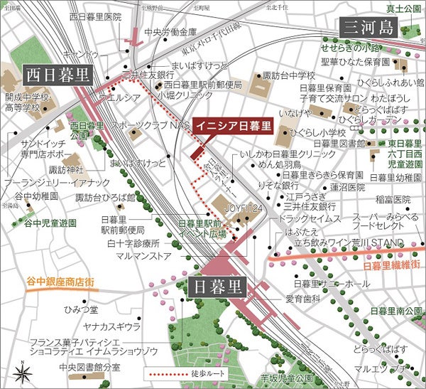 交通:JR「日暮里」駅東口徒歩4分、JR「西日暮里」駅徒歩5分
