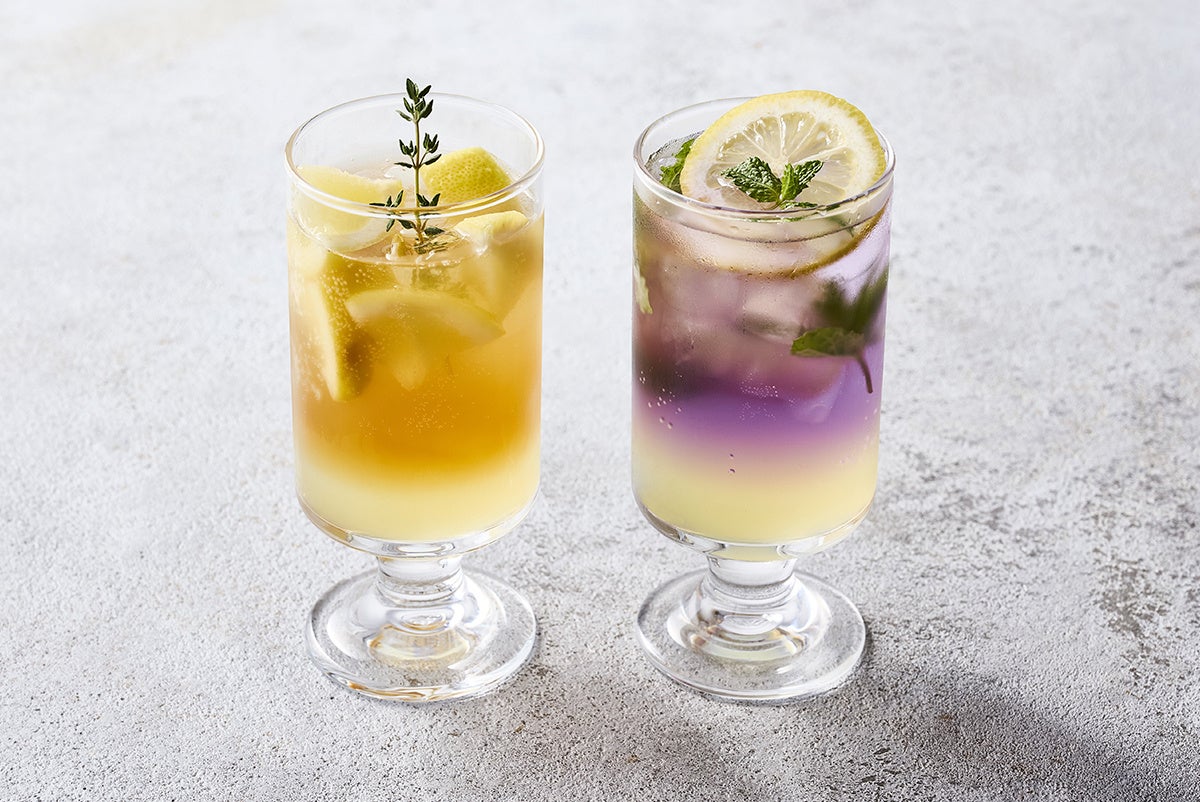 バタフライピーを使用した紫色のグラデーションがきれいな見た目も涼しげなレモネード。