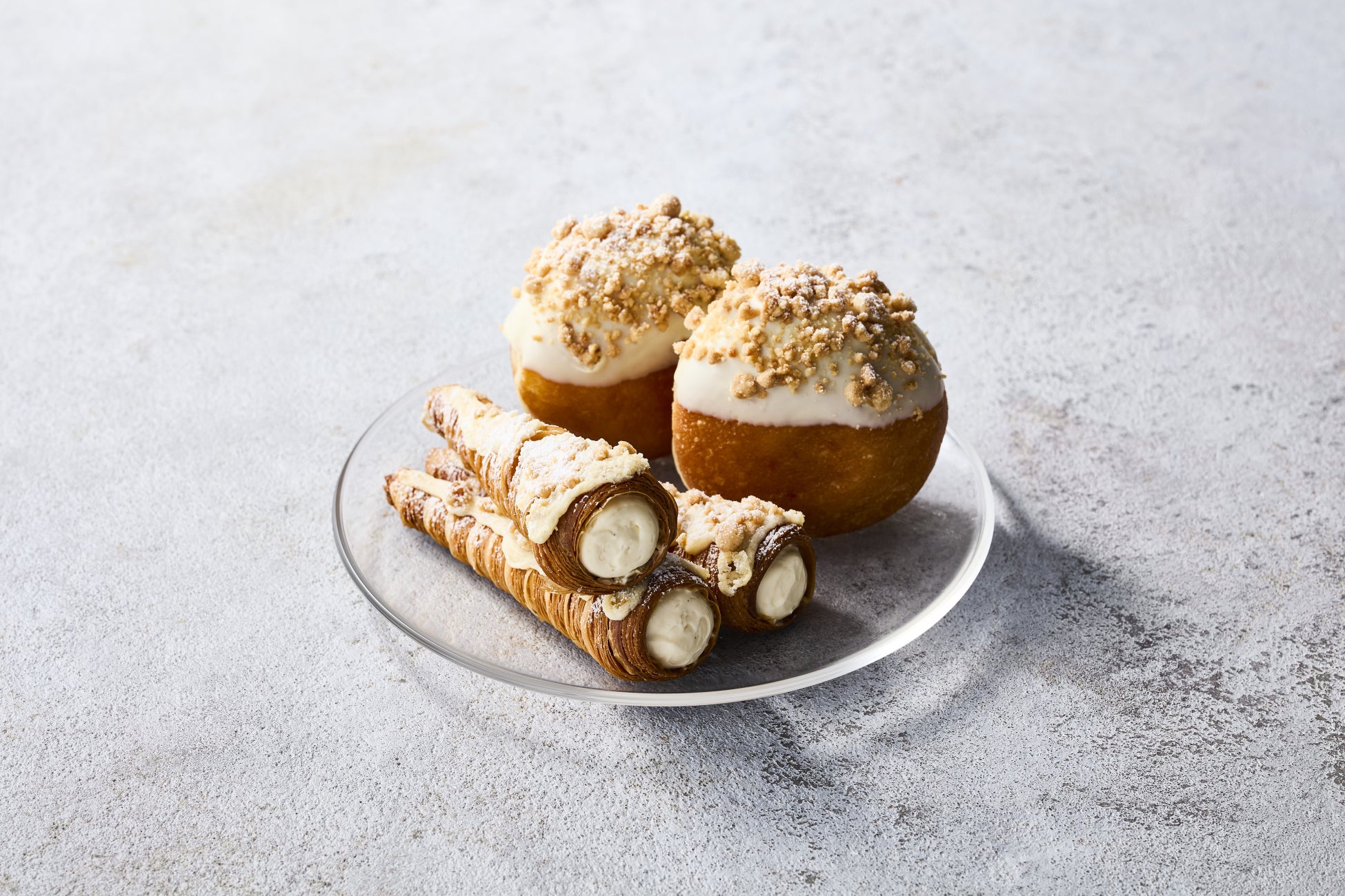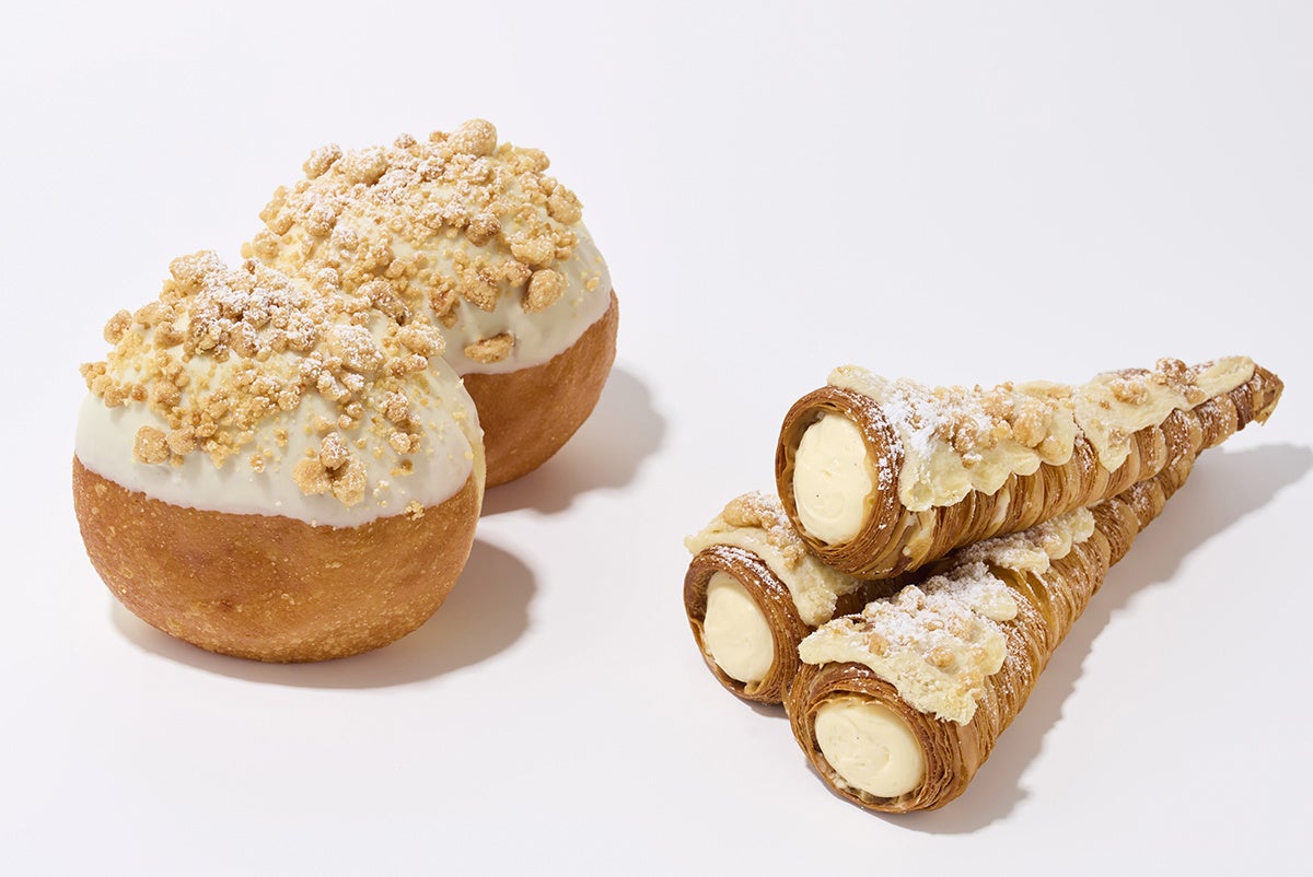 ザクザク食感の生地に爽やかな酸味が広がる「クロワッサンコロネ レアチーズケーキ」と、ふんわりとした歯切れのよい生地に濃厚なチーズの風味がマッチする「ドーナツ レアチーズケーキ」は、ここでしか味わえない特別な逸品です。