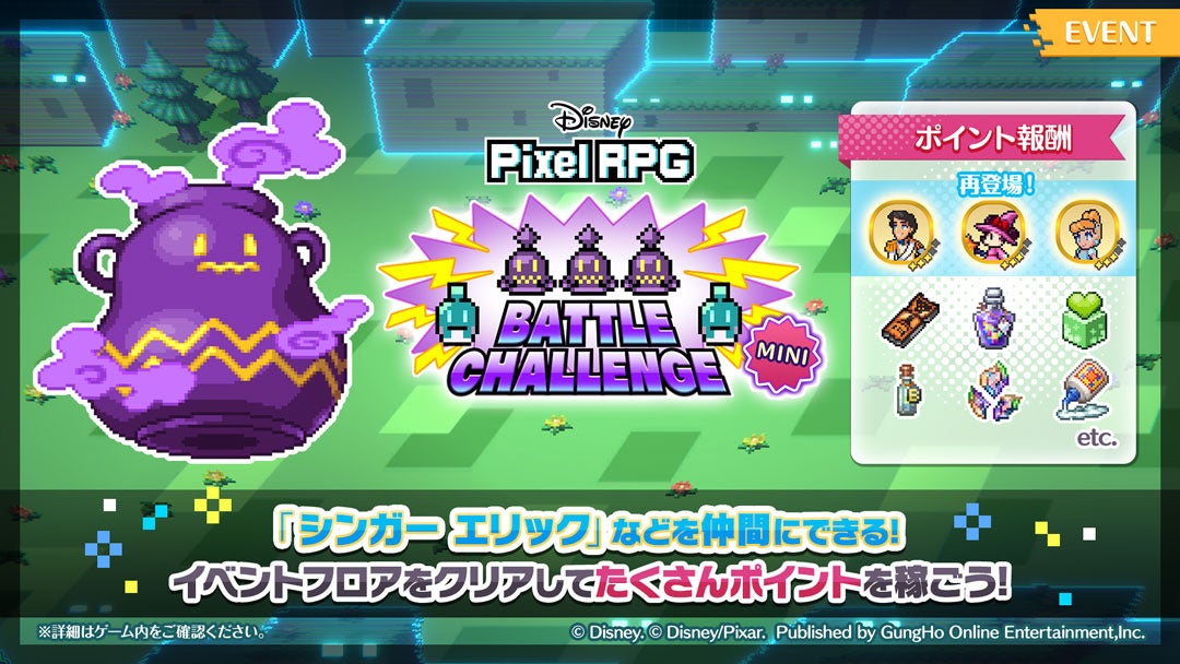 あわせて、「期間限定ガチャチケット(グーフィー親子とエンジョイスケートボード)」や「ブルークリスタル」などの豪華報酬を獲得できる、エネミー討伐イベント「BATTLE CHALLENGE MINI Vol.11」も開催いたします。
