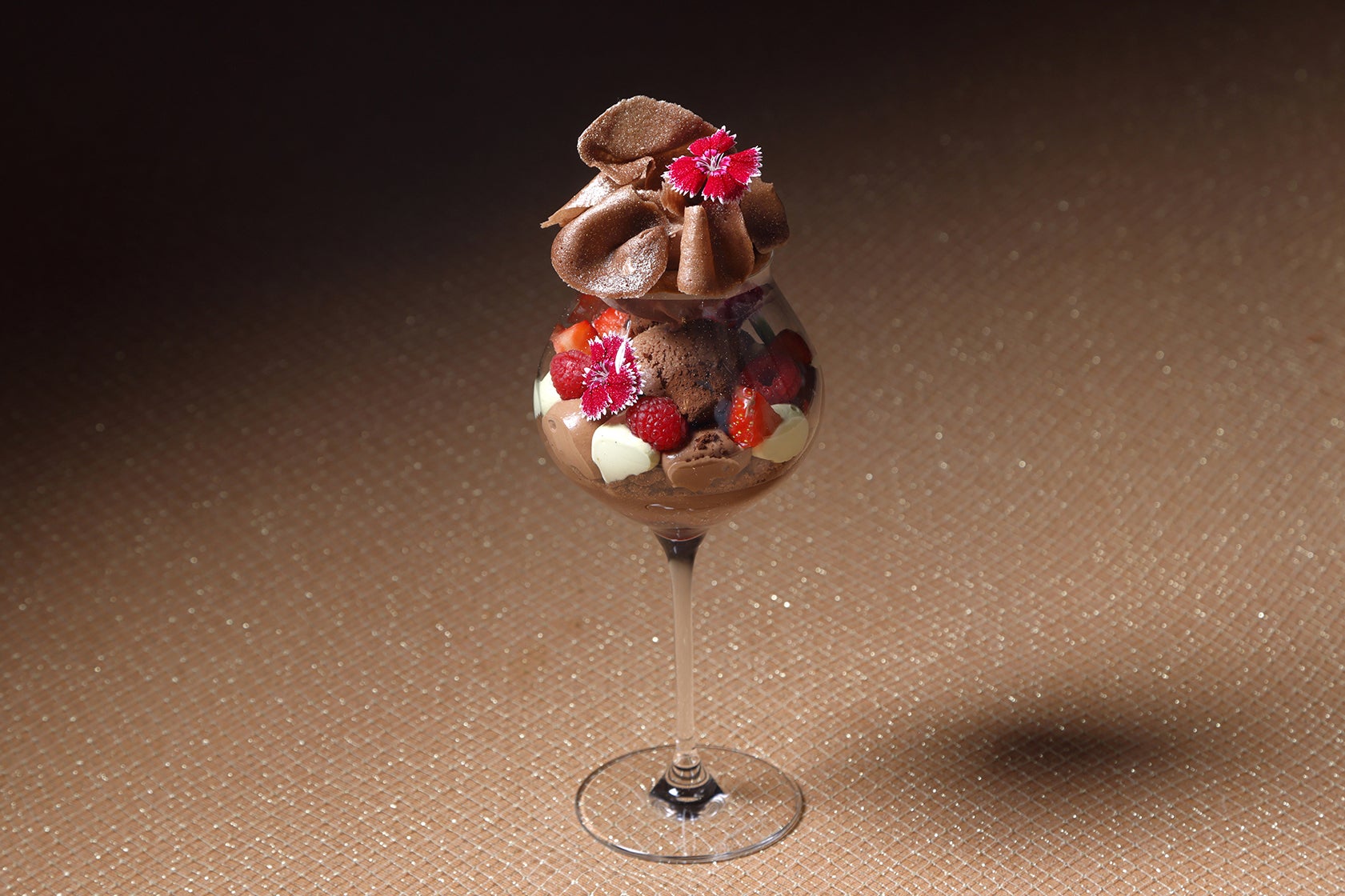 【大阪マリオット都ホテル】天空のラウンジに今冬限定、ショコラとベリーの優美な「ショコラパフェ」が登場!バレンタインシーズンはカヌレやボンボンショコラ、ハートの飴細工で特別仕様に
