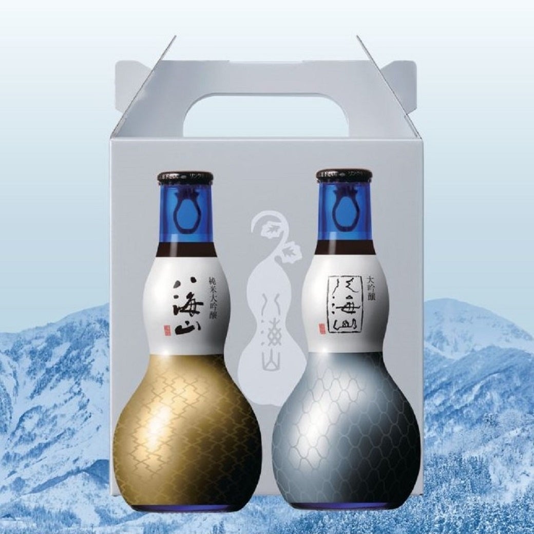 ひょうたんの形状をした瓶に、ふわっと広がる上品な甘やかさが特徴の「純米大吟醸 八海山」と細かくまろやかな味わいの「大吟醸 八海山」の2種類が詰められた、魅力的な“ひょうたん瓶セット”です。飲み終わった後も酒器としてご利用いただけます。