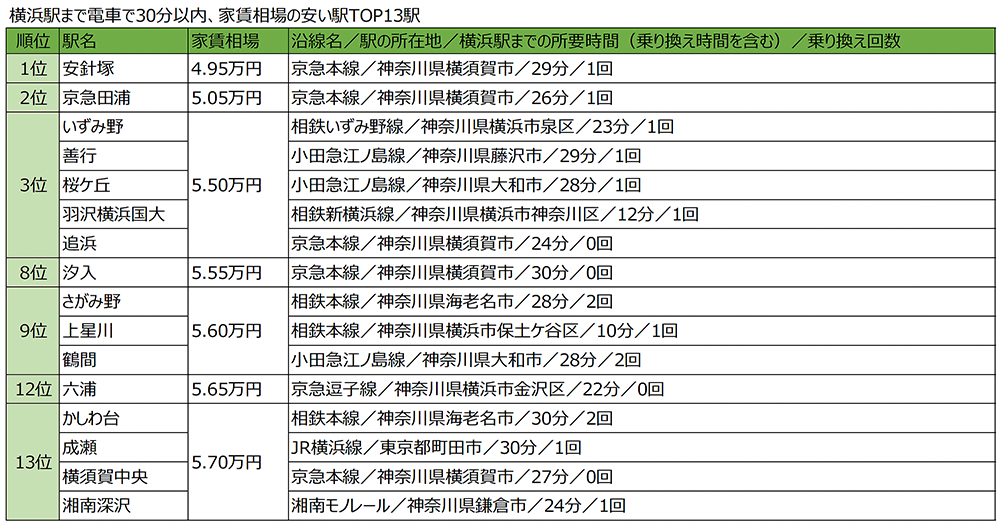 横浜駅よりも家賃相場が3万円以上安い駅も!横浜駅まで電車で30分以内、家賃相場が安い駅ランキング