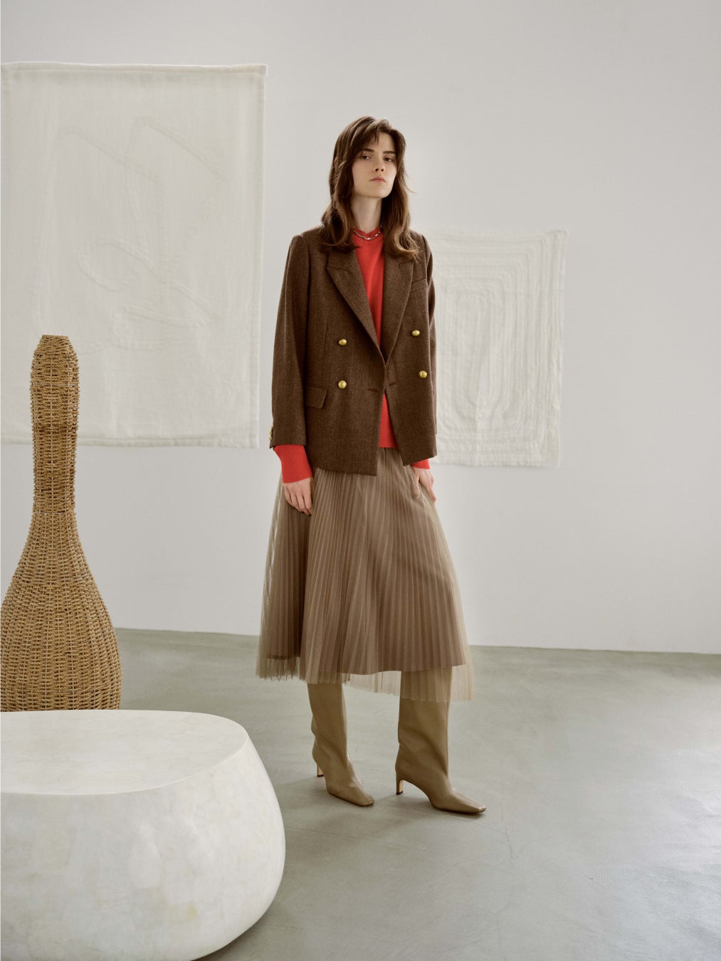 秋シーズンならではのコートやジャケット、ニットなど重厚感のあるファブリックが多い季節だからこそ