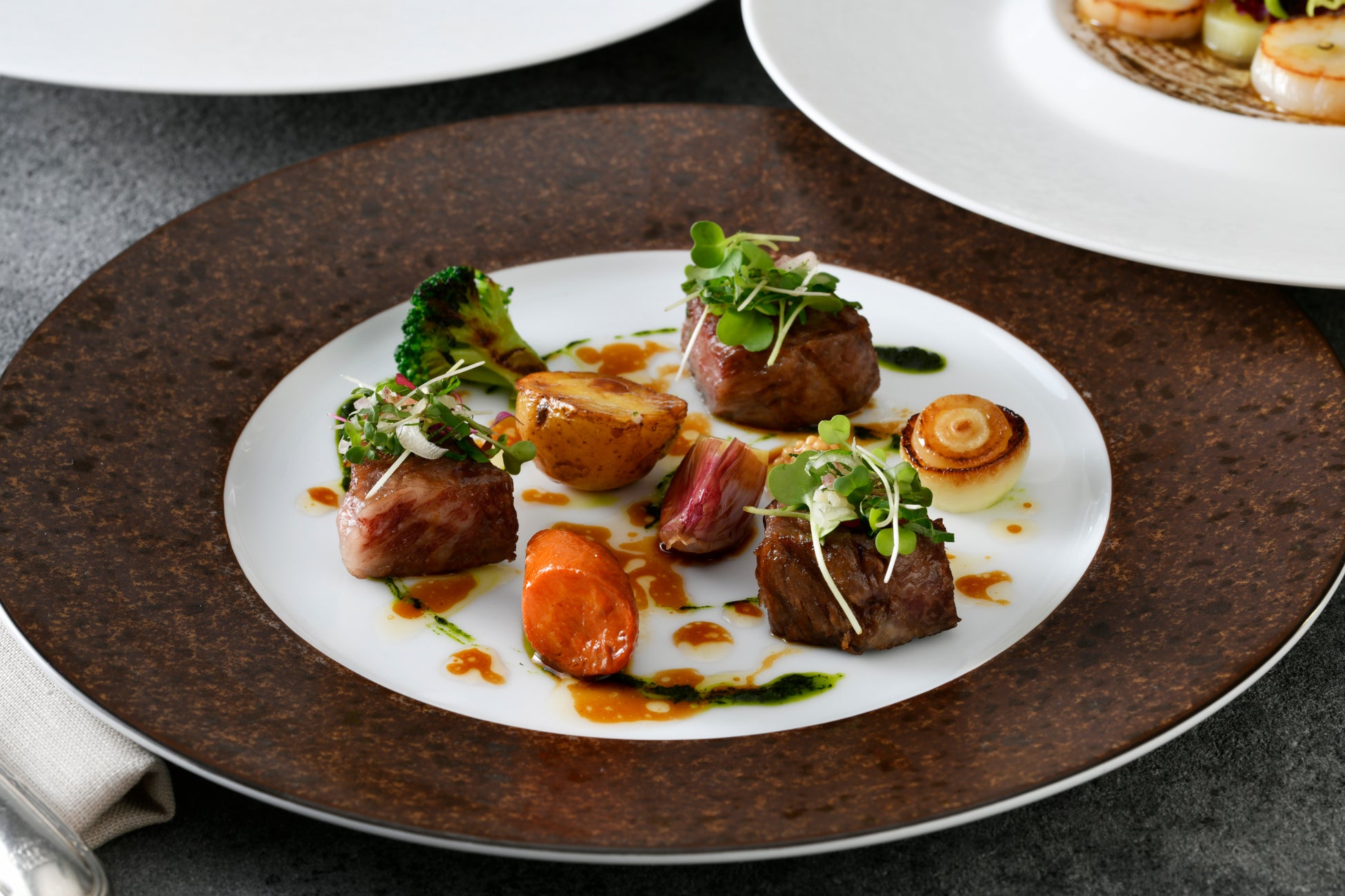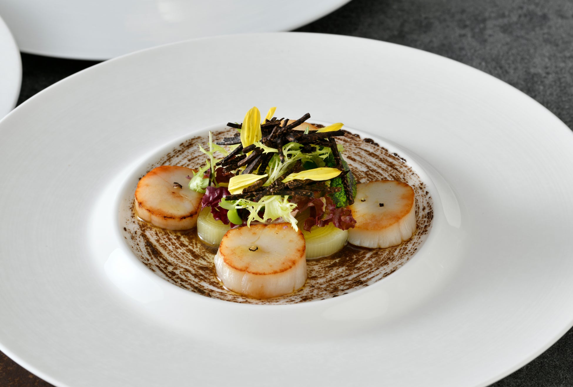 1日2組様限定の本プランは、眺めの良い窓側席を確約、グラスシャンパン付きのフルコースにてご用意しました。トリュフの香りを纏わせた帆立貝のソテーとポワロ―のマリネの前菜や、フォアグラのソテーに瑞々しく味わい深い三浦大根を添えたスパイスがアクセントの濃厚なソースでお召し上がりいただく一皿など、お召し上がりいただきます。魚料理は、柚子香る白身魚のローストはアサリ風味の聖護院蕪のスープ仕立てでご用意、肉料理では小さな樽のようにカットした国産牛ロース肉のグリルをご用意しました。目の前に広がる煌めく横浜の街並とともに、イルミネーションと美食が奏でる晩餐を大切な方とご一緒に、どうぞごゆっくりとお楽しみください。