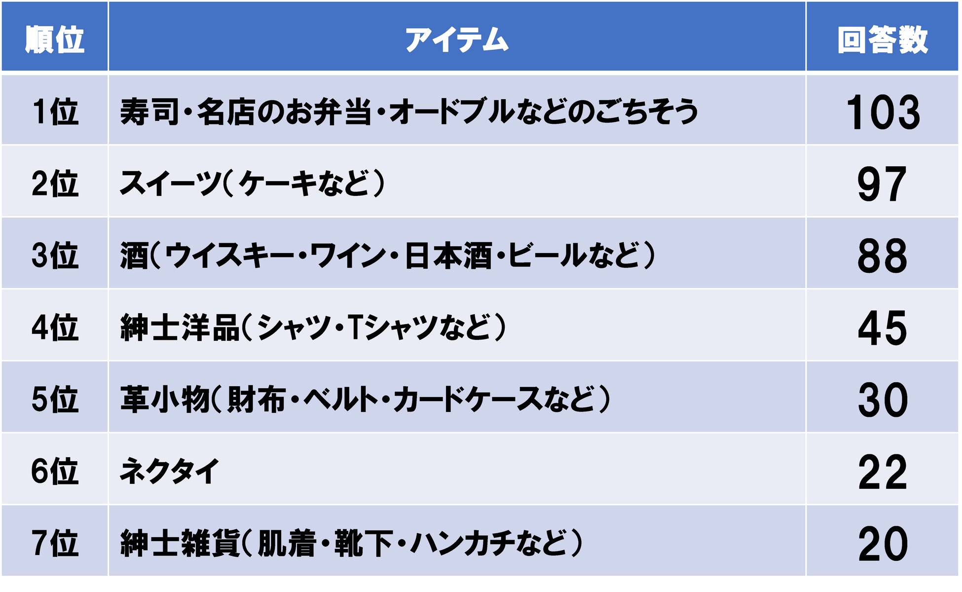 Q .父の日に何を贈りますか。 ※463人にアンケート