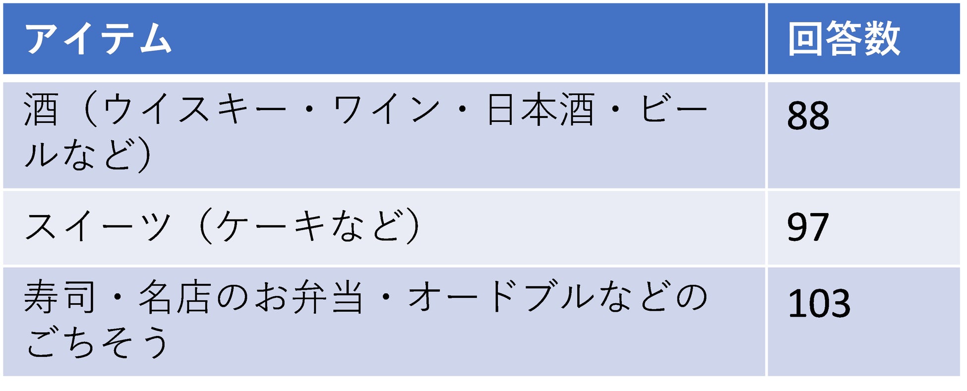 お酒を一緒に飲みたい、いつもより贅沢してほしい、非日常感を味わってもらいたい、などと回答。