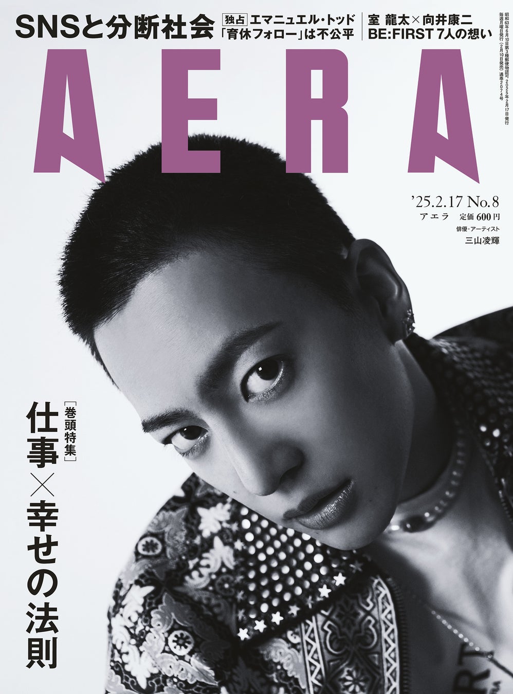 2月10日発売のAERA2月17日号には、俳優として、アーティストとして、両輪で活躍をみせる三山凌輝さんが登場します。三山さんが役者としての信念を語るほか、三山さん主演映画の主題歌を歌う、自らが所属するグループBE:FIRSTが登場したイベントの様子を完全レポートします。巻頭特集は「仕事×幸せの法則」。幸せを感じにくいニッポンで、どうしたらキャリアを積みながら幸せを感じられるのか、考えます。世界的"知の巨人"であるエマニュエル・トッド氏の本誌独占インタビューが実現。今号と次号の2号連続でたっぷり届けます。今回のテーマは「トランプ政治」。混沌とするトランプ政治をトッド氏がどう見ているのか、貴重な内容です。今号から3号にわたり「SNSと民主主義」をテーマに短期集中連載も始まります。「女性×働く」連載は、子育てする同僚の育休フォローなどをめぐってシングルの人たちが抱くモヤモヤについてリアルな声を取材。他にも様々な企画が詰まった、盛りだくさんの一冊です。