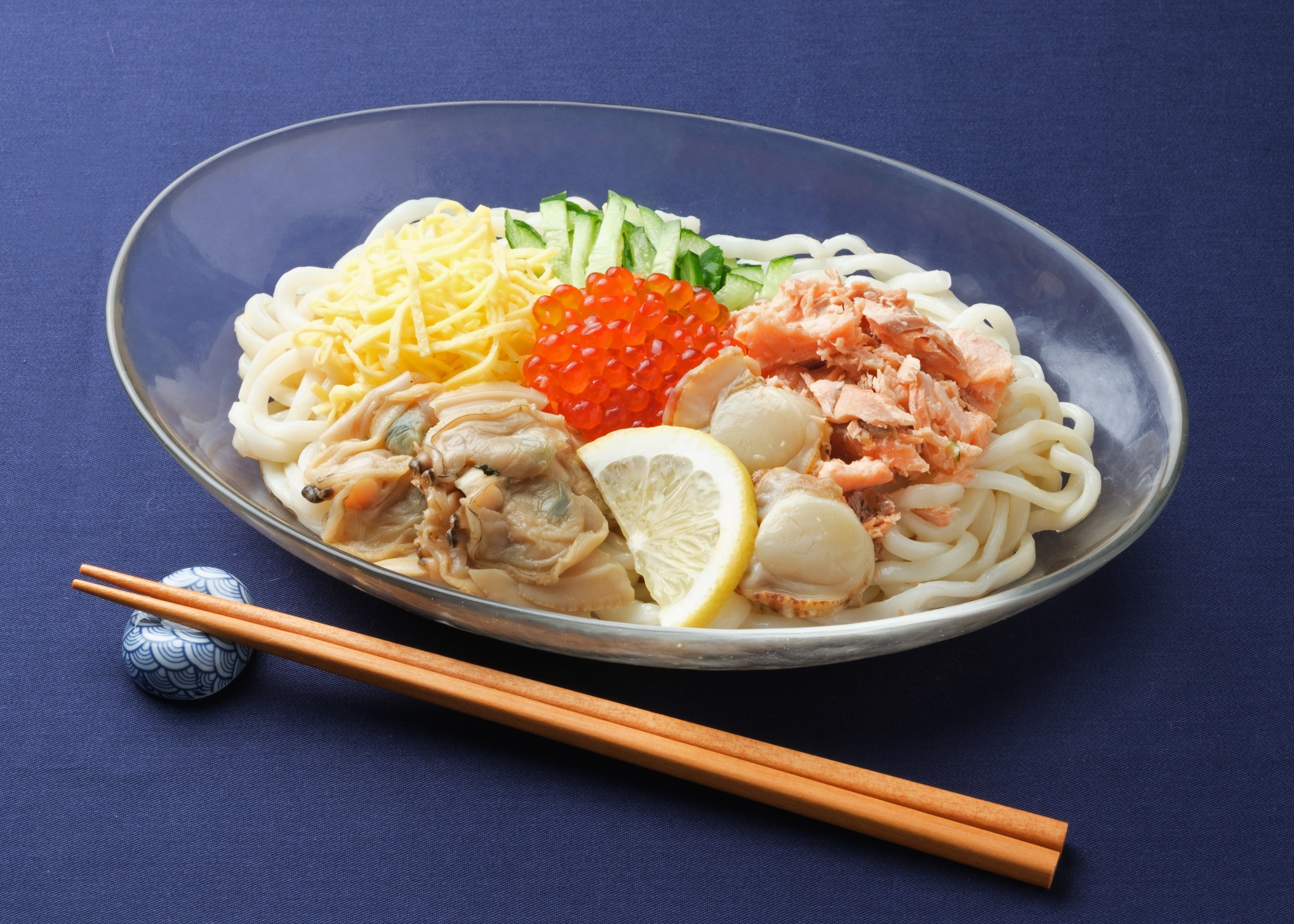 〈北辰水産〉秋の海鮮冷やしサラダうどん(讃岐うどん)(1食) 980円
