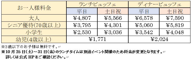 ディナービュッフェ 1部 17:30~19:00 / 2部 19:30~21:00