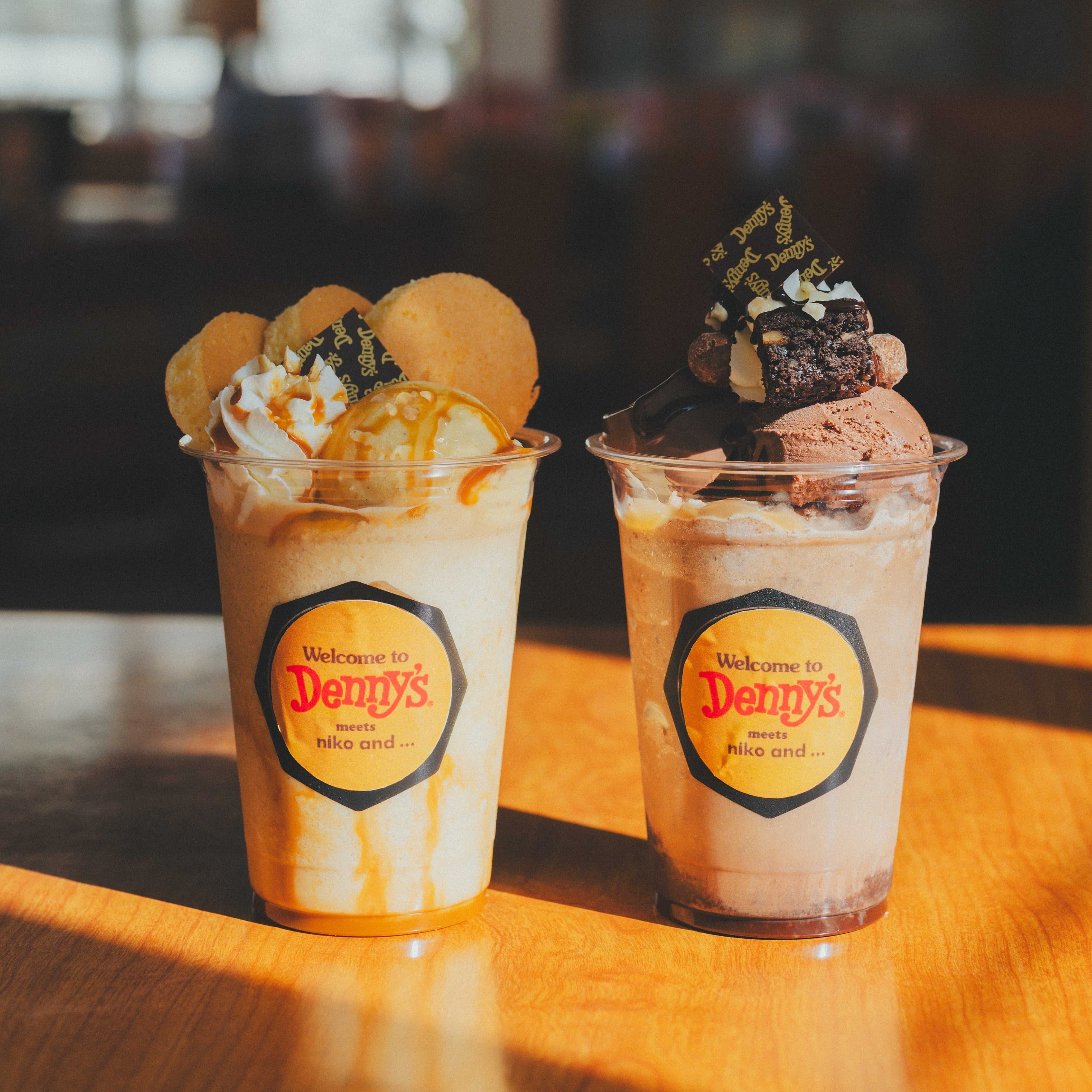 niko and ... COFFEEとniko and ... KITCHENで展開するコラボレーションスムージーは、デニーズの人気デザートメニューからインスパイアした「キャラメルハニーパンケーキスムージー」と「DEVIL'Sブラウニースムージー」の2種、期間限定の味をご用意しています。