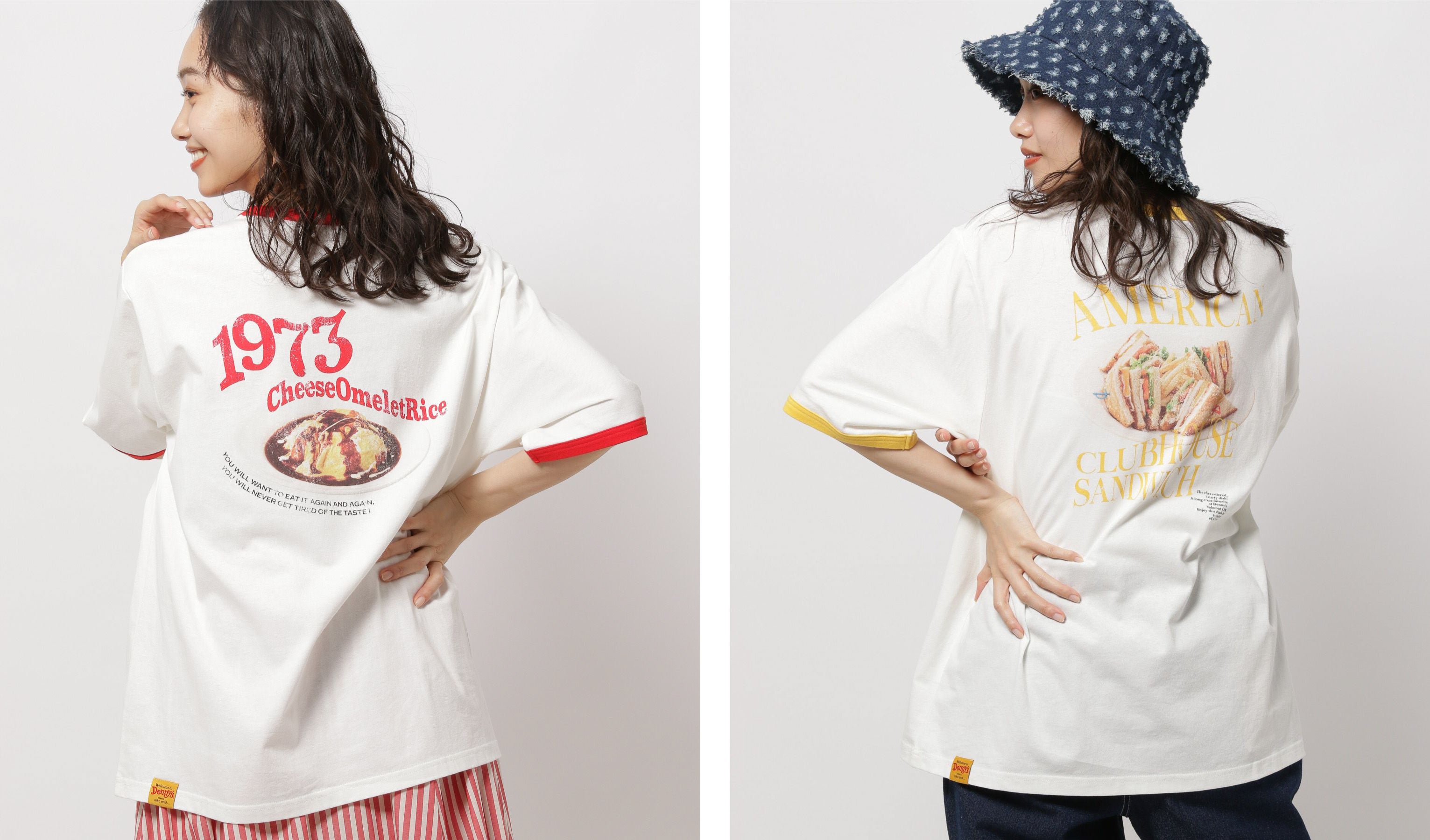 アパレルアイテムは、デニーズのグランドメニュー《とろ~り卵とチーズのオムライス》と《アメリカンクラブハウスサンド》のグラフィックを使用しヴィンテージ風に加工した「半袖Tシャツ」と、トレンドのショート丈で、半袖と長袖の着こなしが楽しめる2way仕様の「デニムシャツ」の2型を展開します。