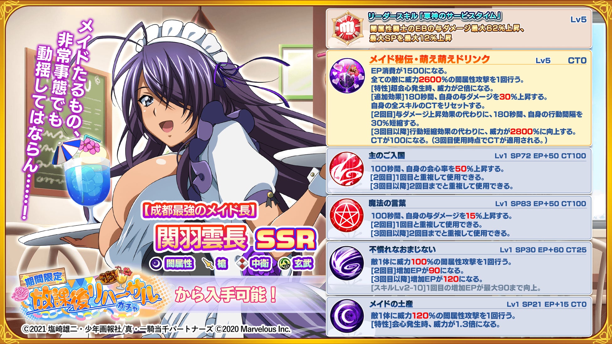 8月28日(木)より開始した「放課後リハーサルガチャVol.1」では、新たに「【成都最強のメイド長】関羽雲長」(CV: 生天目 仁美)が登場!