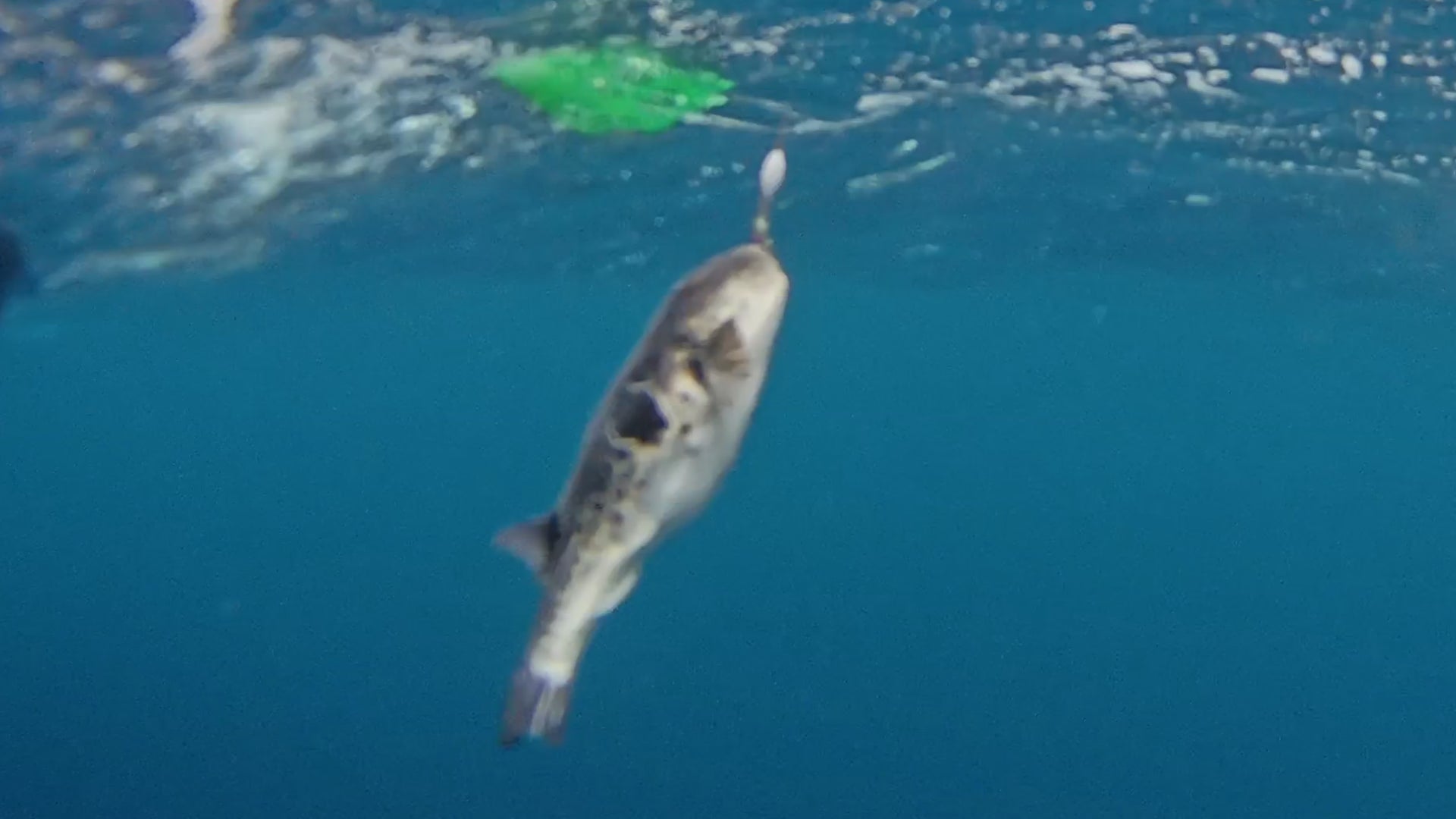 しかし、反応がない。大ブームの釣りとはいえ、相手はフグの王様・超高級魚のトラフグ。1日やって1尾釣れれば上出来のターゲット。なかなか姿を現さない。誘い方やエサに工夫をこらし、色々と試す宮澤。