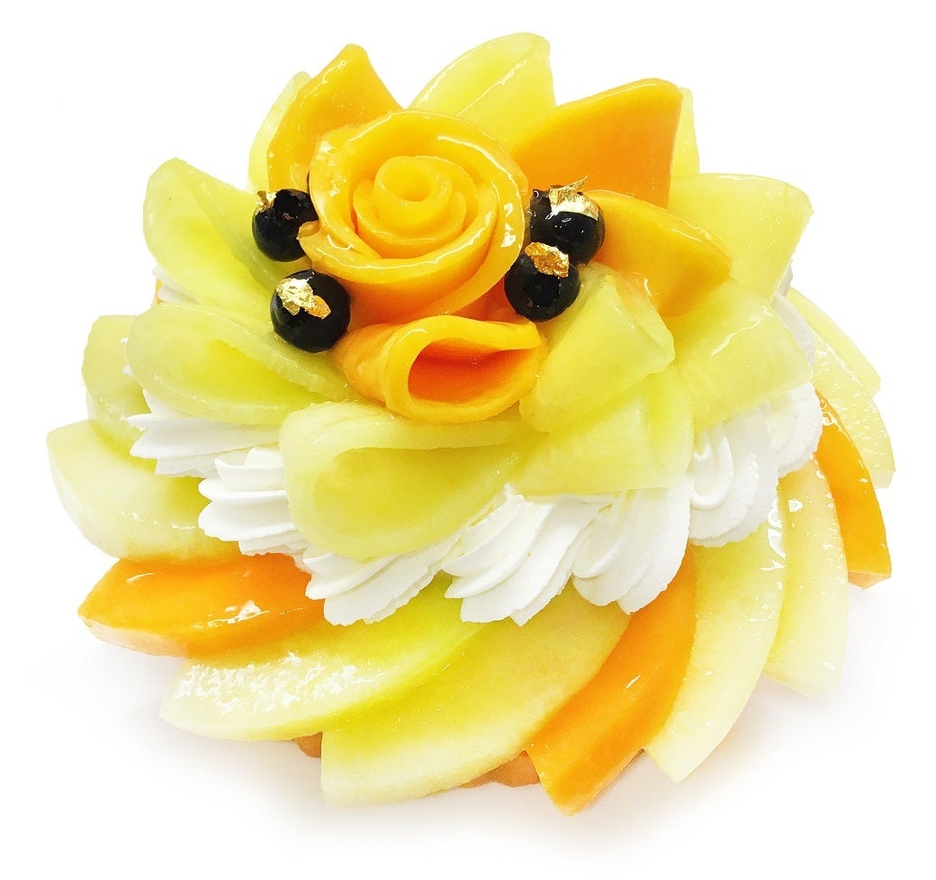 とろけるように甘いマンゴーをバラの花に見立て、芳醇な香りで甘い果汁たっぷりのメロンとともに華やかに飾り付けた、父の日限定のケーキです。