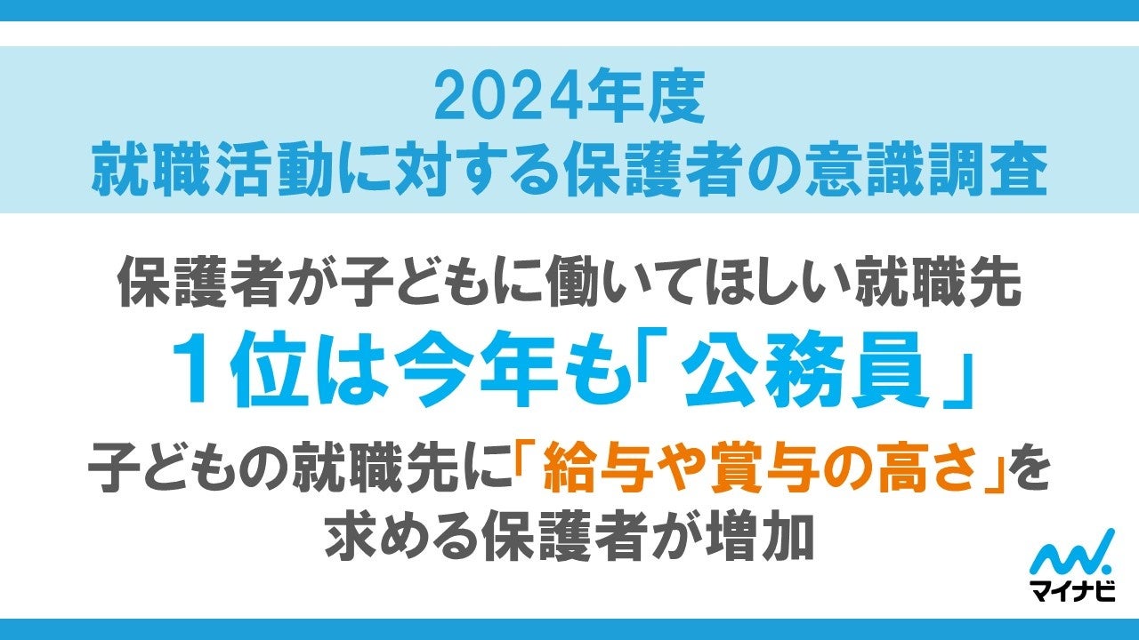 保護者が子どもに働いてほしい就職先は今年も「公務員」が1位。子どもの入社企業に「給与や賞与の高さ」を求める保護者が増加傾向