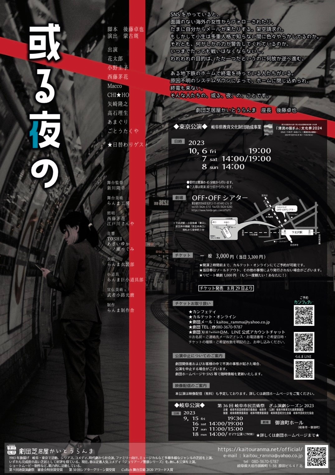 岐阜では知らぬものはいない?劇団芝居屋かいとうらんまの東京公演! 地下鉄のホームに取り残された人々の「或る夜の」不思議な物語!