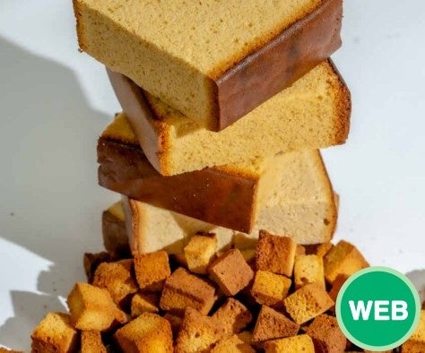 プロテインを入れた“筋肉カステラ”は、キックボクシングジムに通う店主が、減量中の格闘家のために作ったことがきっかけです。今ではさまざまなスポーツのアスリートに愛されるおやつに。間食にはふんわりとした食感のソフトタイプを、ダイエットにはしっかりとした食感のハードタイプがおすすめです。ひと口30回以上噛むことがポイント。また、小麦粉の代わりに米粉を使ったグルテンフリータイプも人気です。食べやすいひと口サイズの“筋肉ラスク”も。