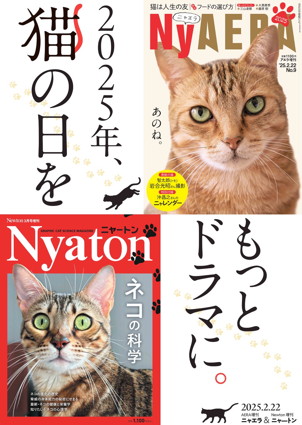猫を愛するみニャさま、2025年も丸ごとぎっしり猫だらけの「NyAERA」の季節がやってきました。今年はさまざまなイベントとコラボしています。ぜひ動画やNyAERAのサイト(https://dot.asahi.com/nyaera)とともにお楽しみください。