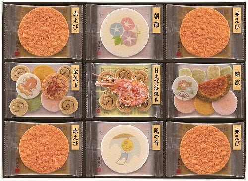 穏やかでしあわせな、日本の夏の情景を映し込んだえびせんべいの詰合せ。