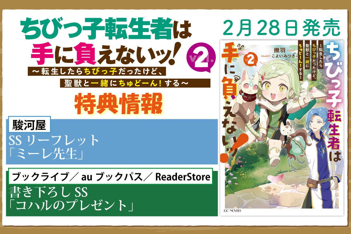 マイクロマガジン社(東京都中央区)は、GCノベルズ『ちびっ子転生者は手に負えないッ!〜転生したらちびっ子だったけど、聖獣と一緒にちゅどーん!する〜 2』(小説:撫羽 イラスト:こよいみつき)を2025年2月28日に発売いたします。