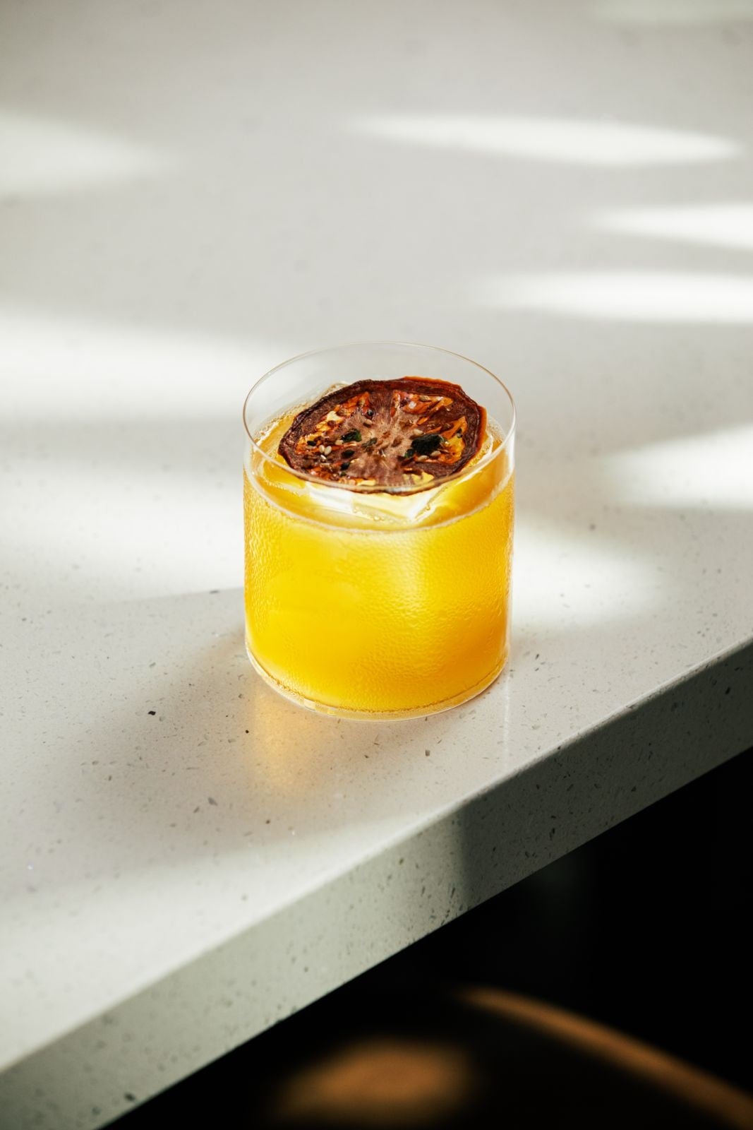 テキーラ「コディゴ 1530」ブランコ、メスカル、フィノ シェリー、ドリトス、トマト、チャーシューソース、イエローマスタード、ライム