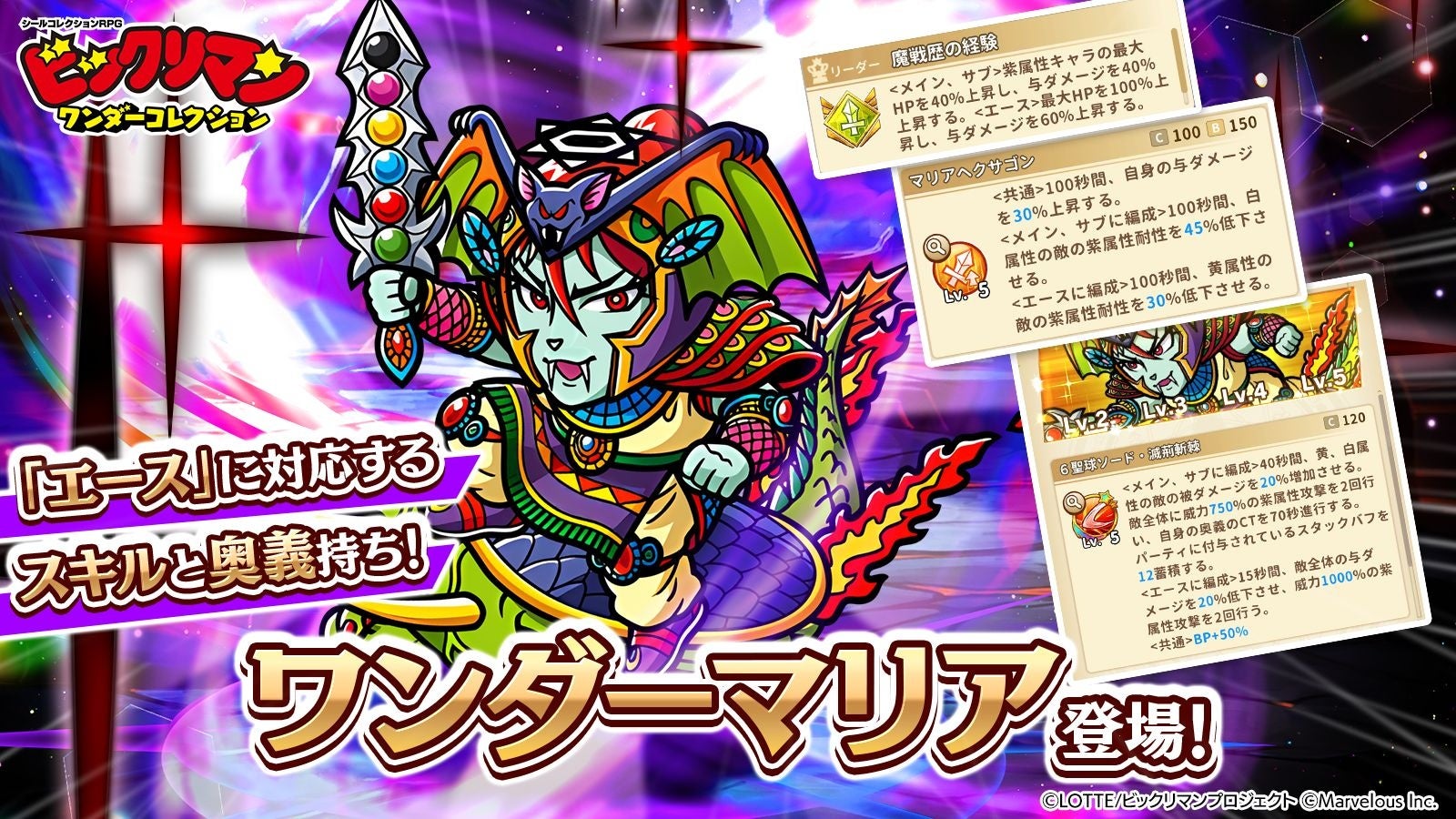 シールコレクションRPG『ビックリマン・ワンダーコレクション』:期間限定イベント「超念魔体覚醒・ワンダーマリア」の開始!新キャラ「ワンダーマリア」、「瞬動師」が登場!