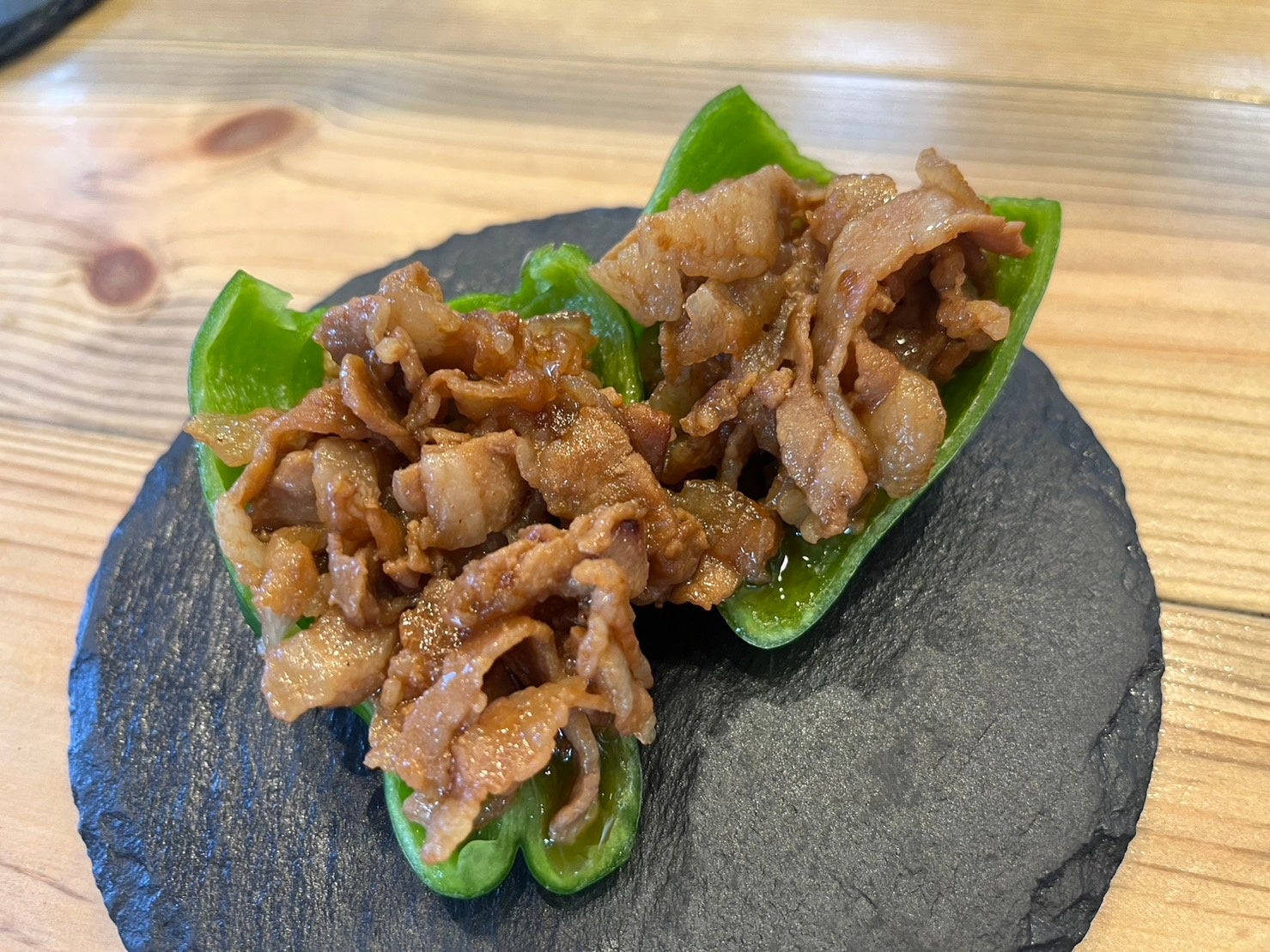 「生ピーマンの肉溢れ」
